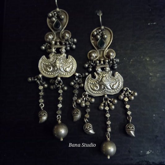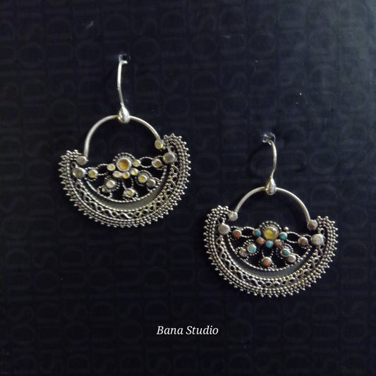 हाथ से तैयार की गई खूबसूरत चांदी की बालियां।