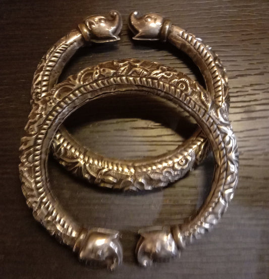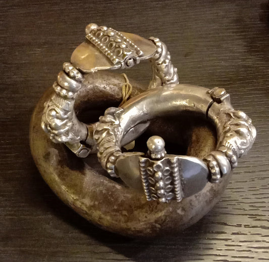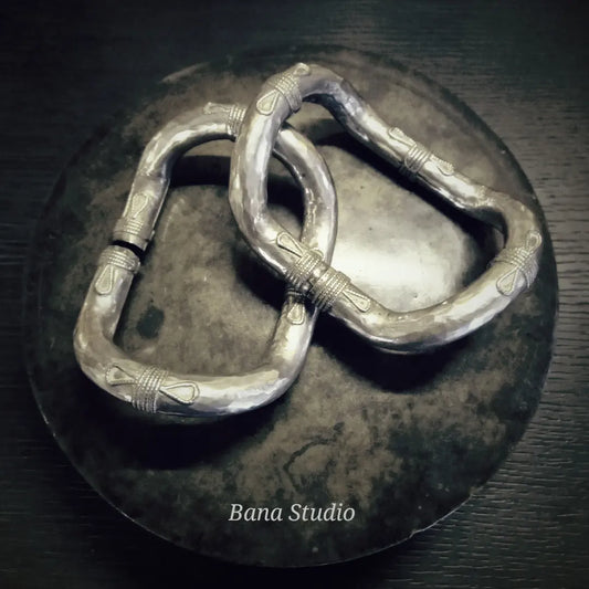 हाथ से तैयार सुंदर चांदी के कंगन।
