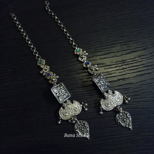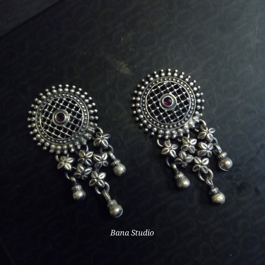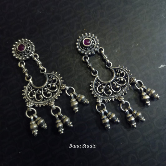 हाथ से तैयार की गई खूबसूरत चांदी की बालियां।