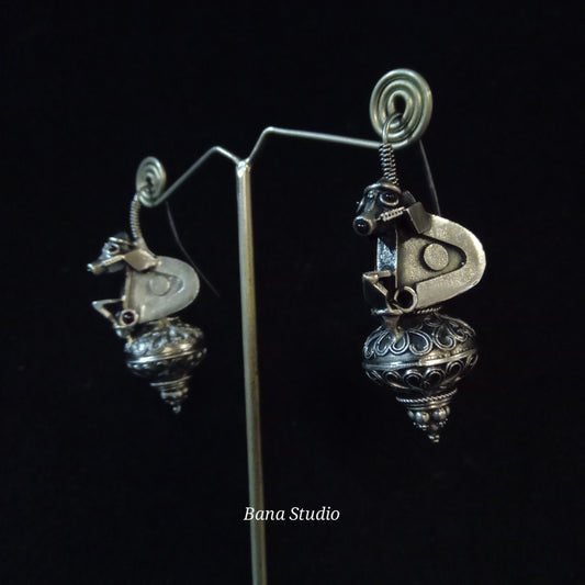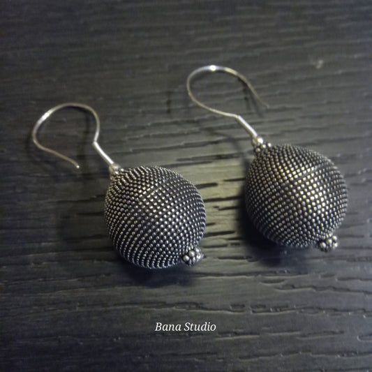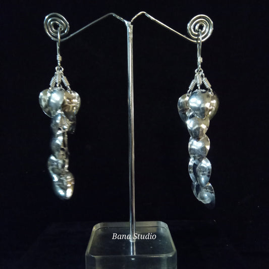 हाथ से तैयार की गई खूबसूरत चांदी की बालियां।