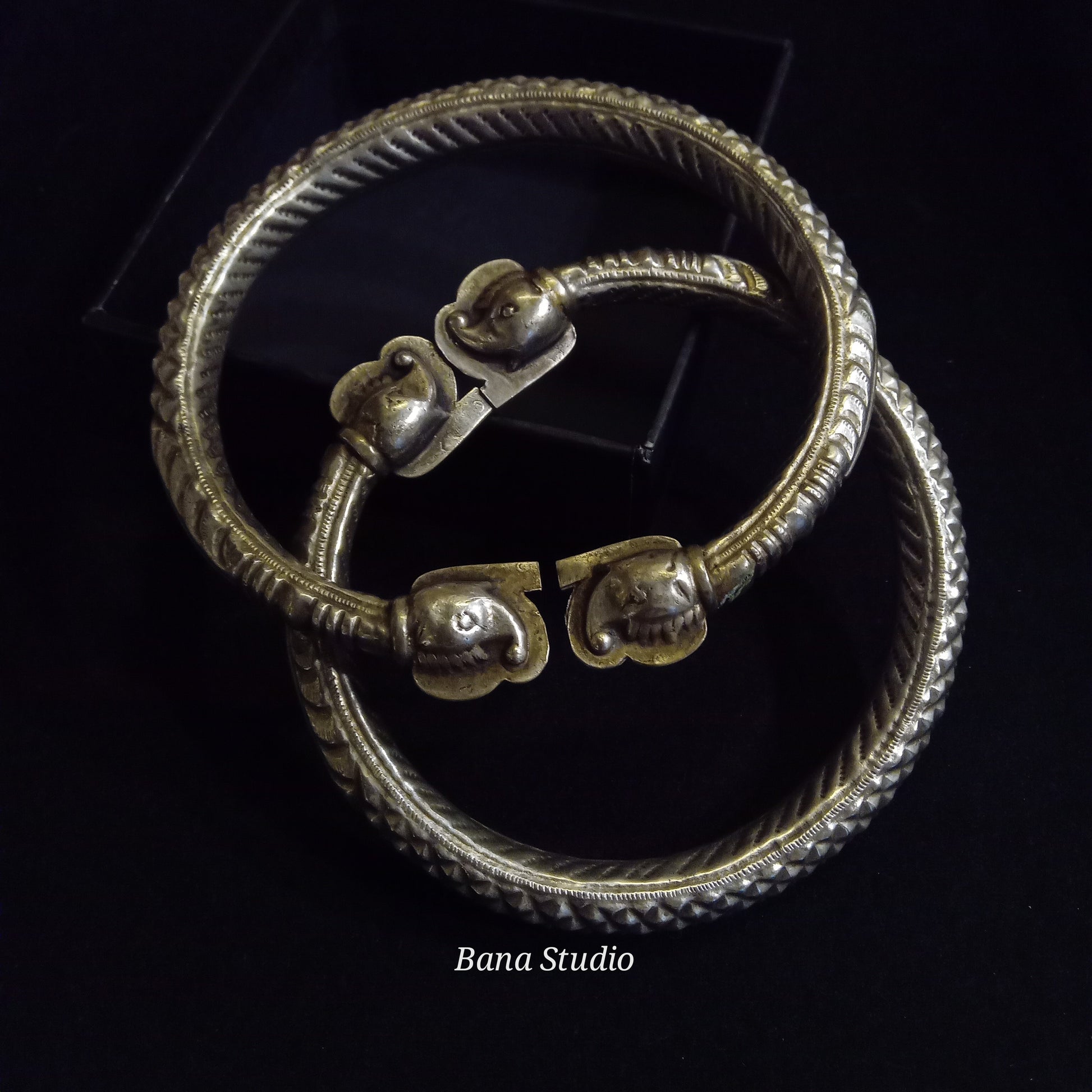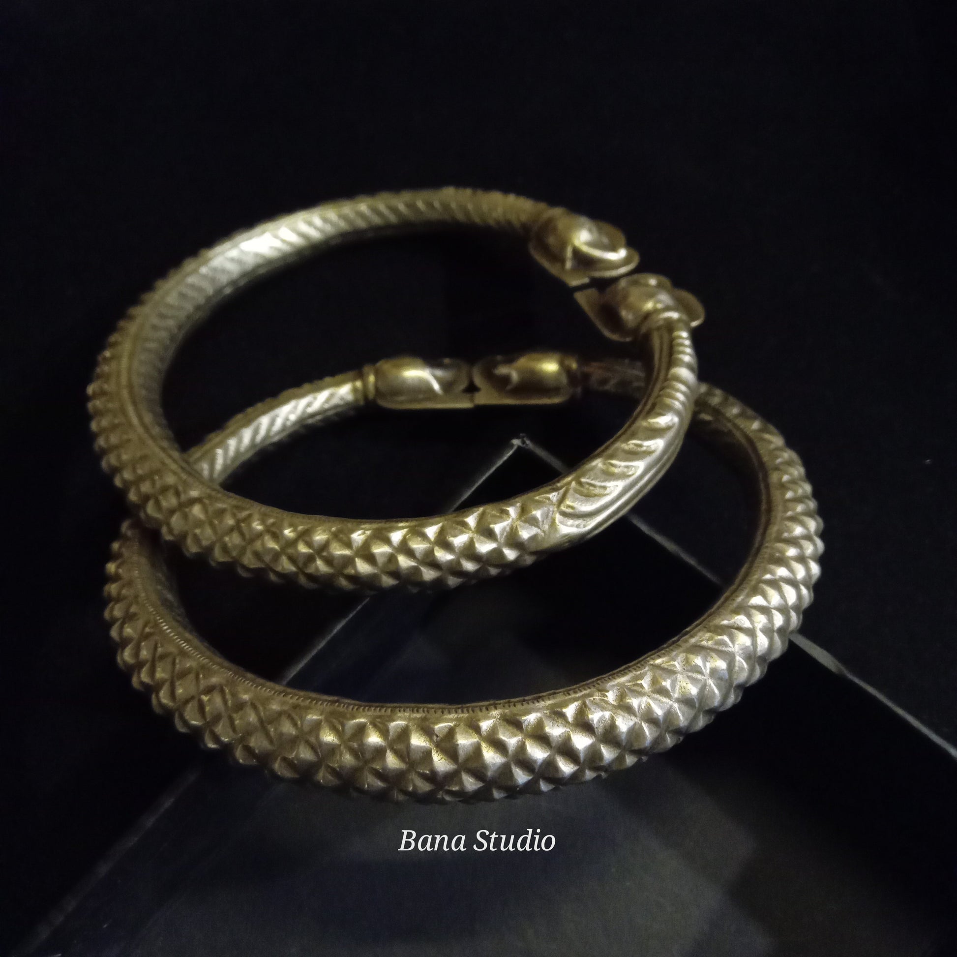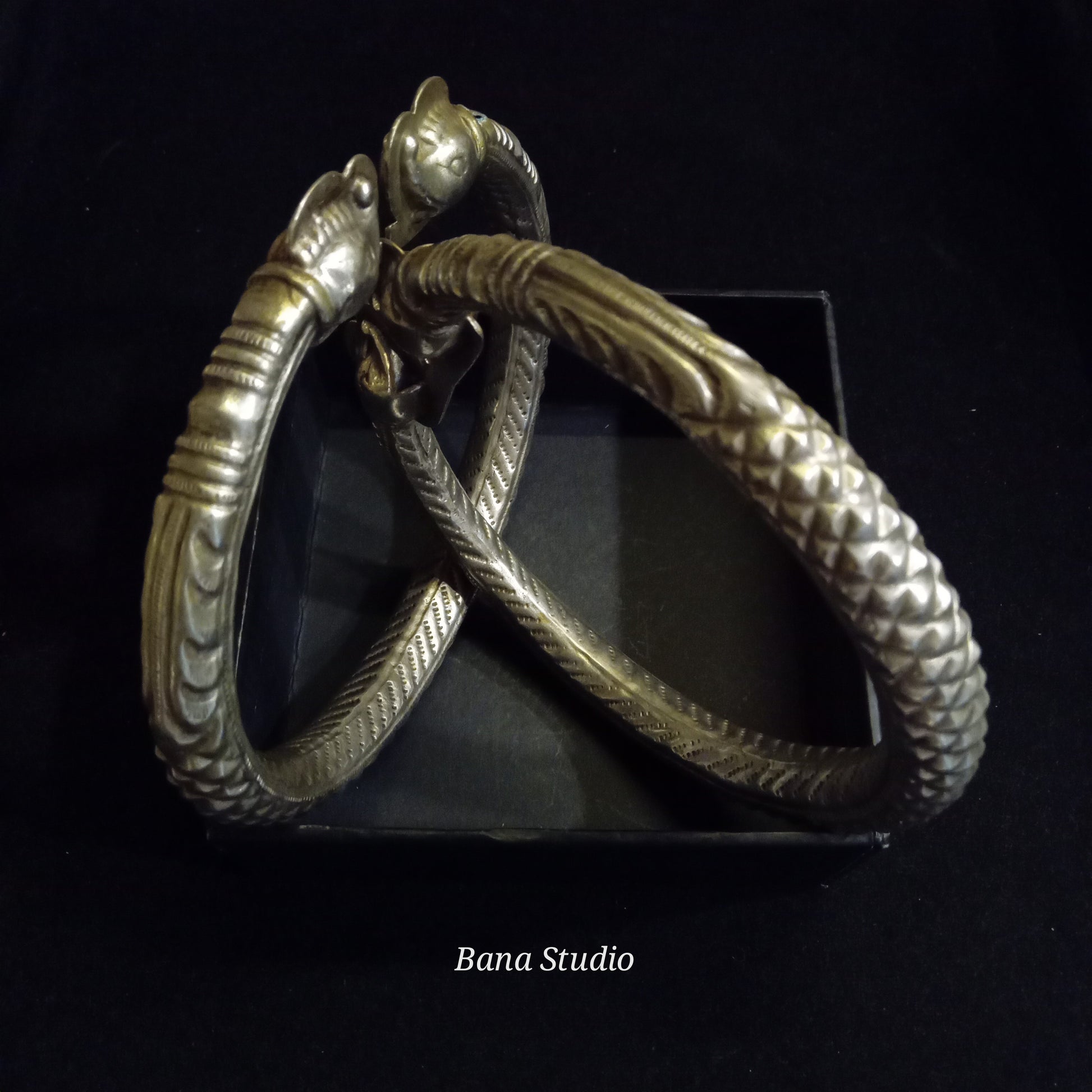 हाथ से तैयार सुंदर चांदी के कंगन।