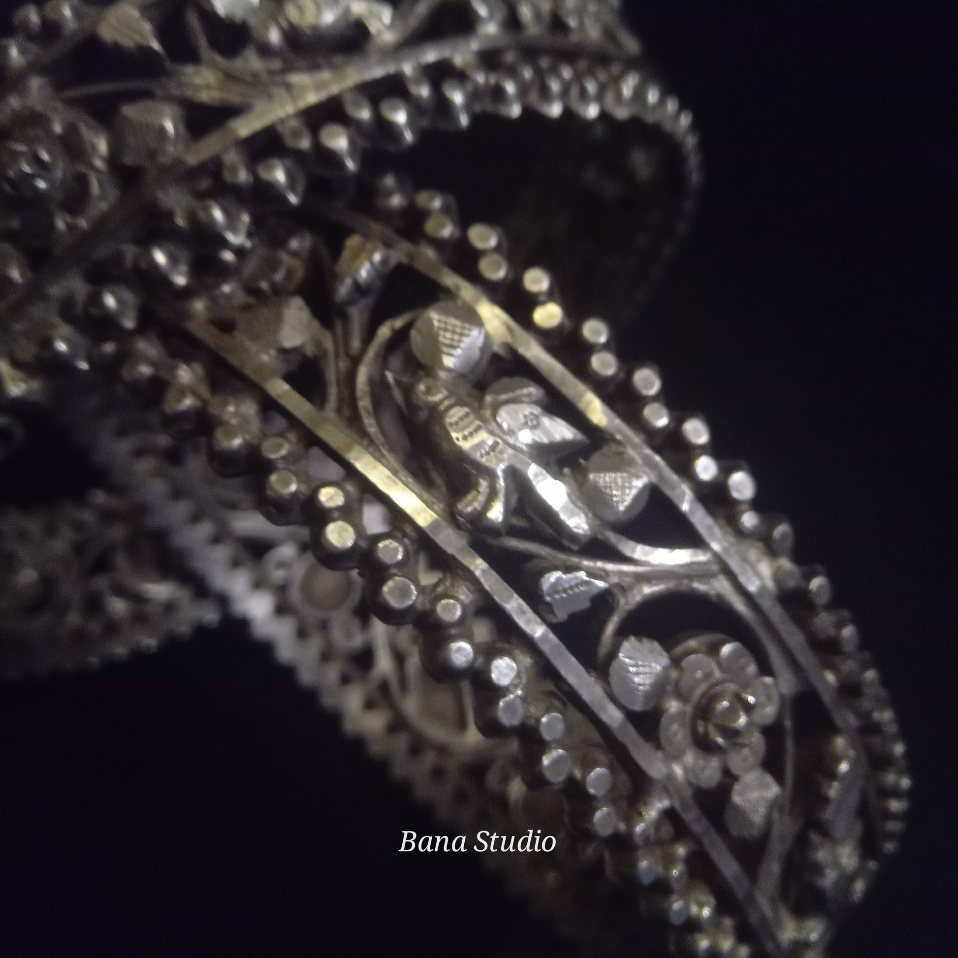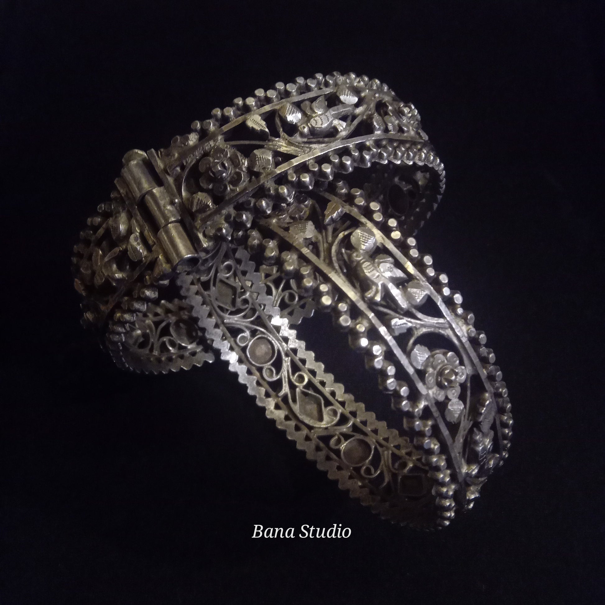 हाथ से तैयार सुंदर चांदी के कंगन।