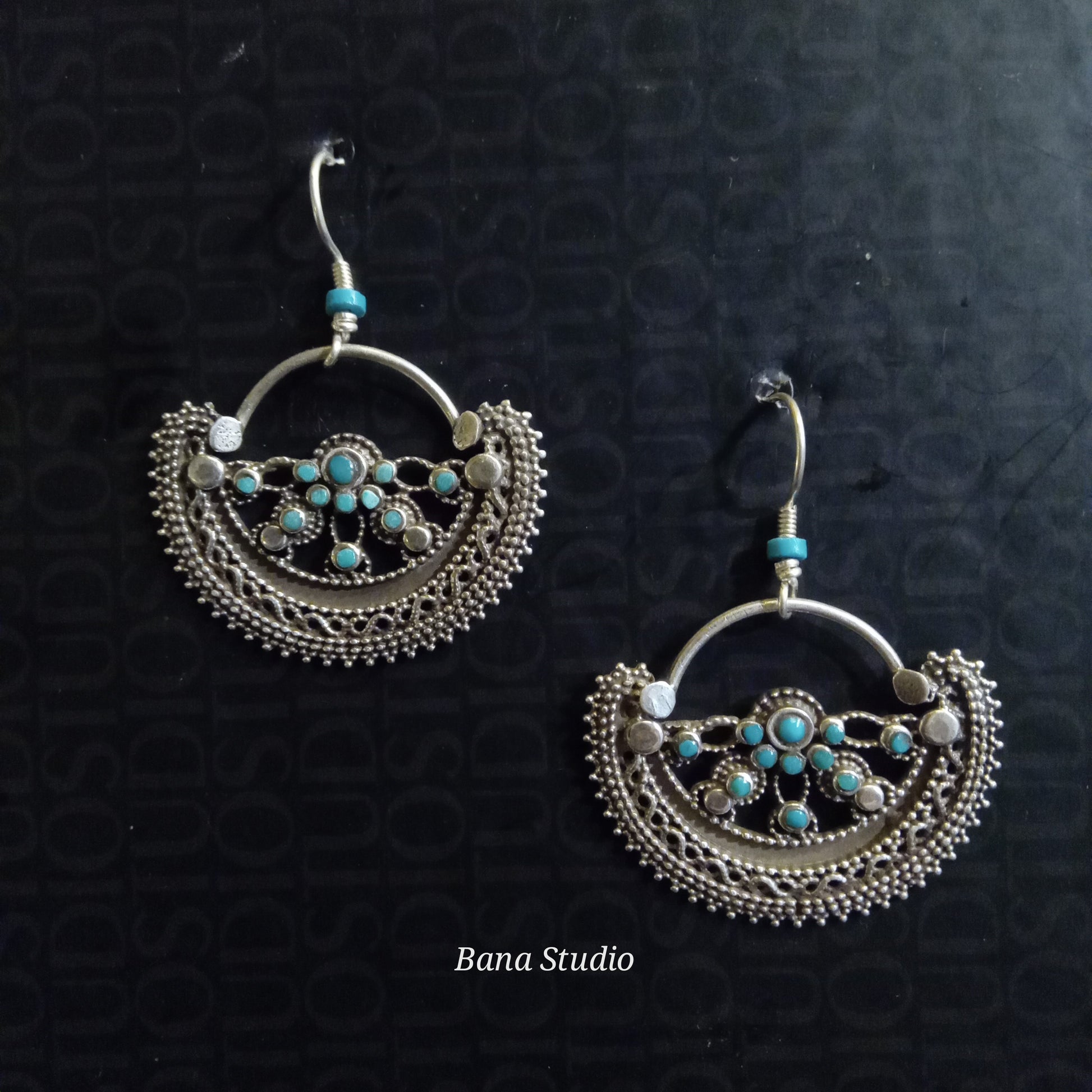 हाथ से तैयार की गई खूबसूरत चांदी की बालियां।
