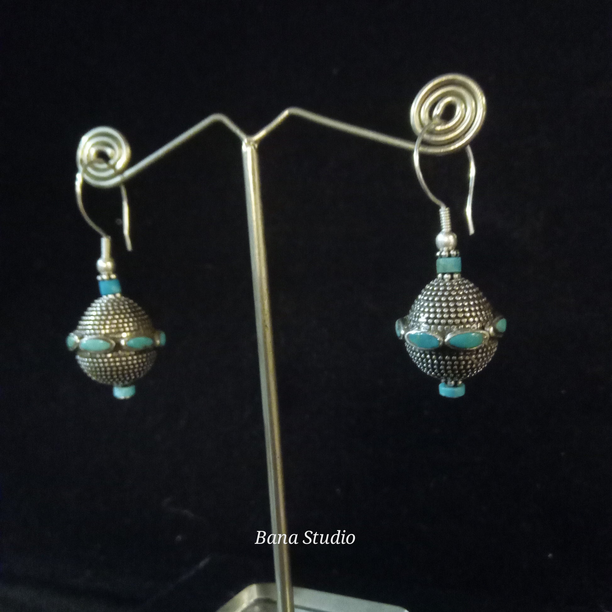 Vintage style 925 silver earrings studded with turquoise. Length 5cm