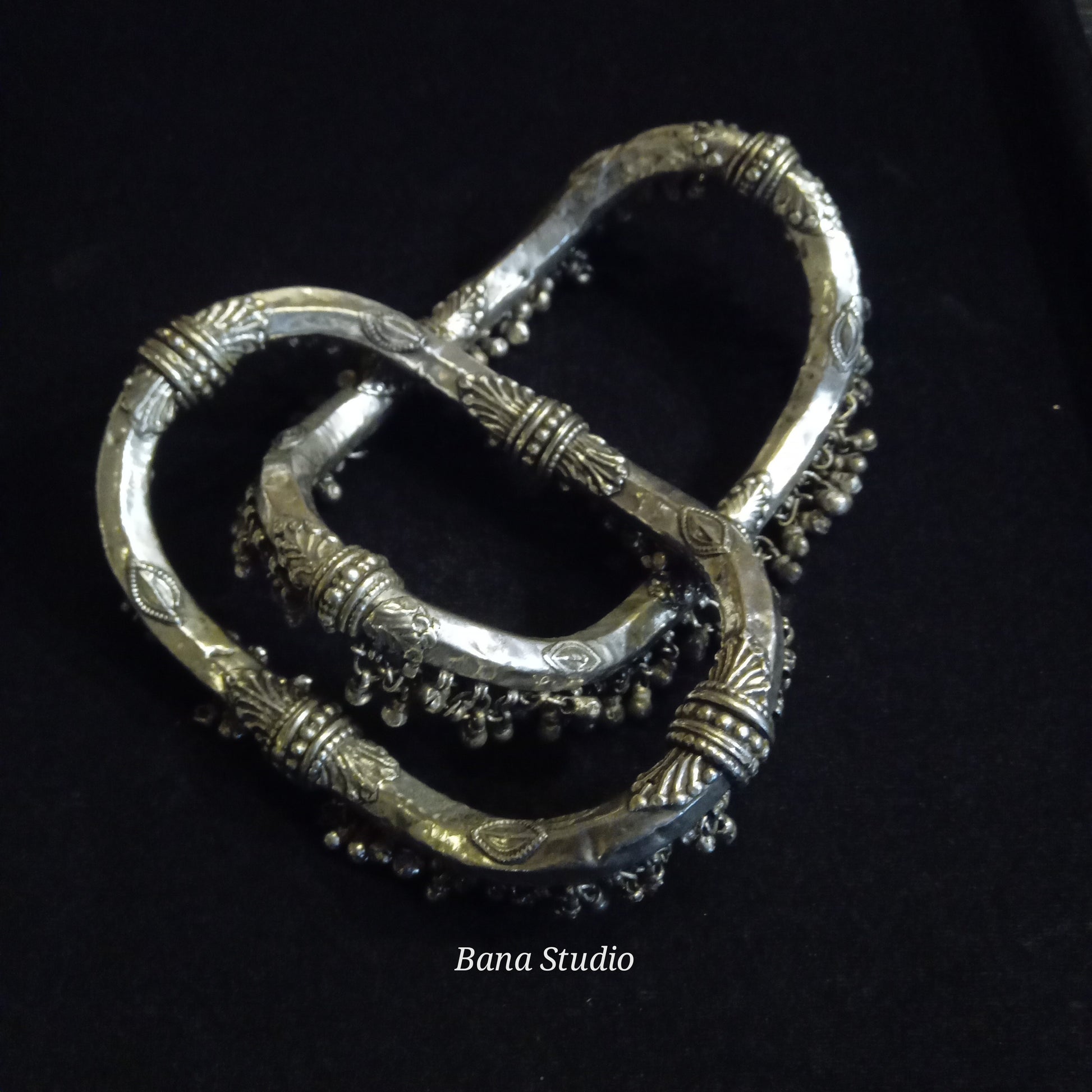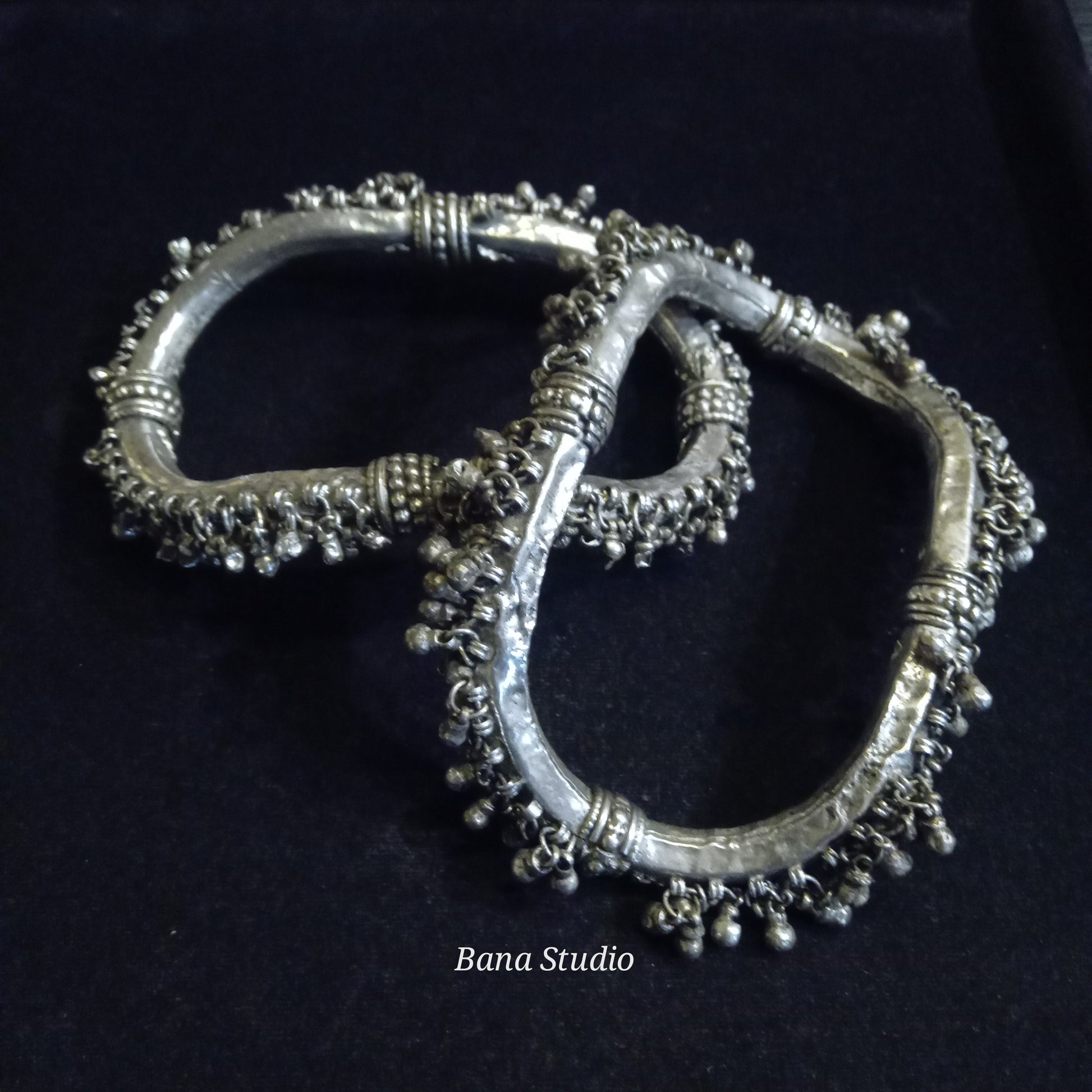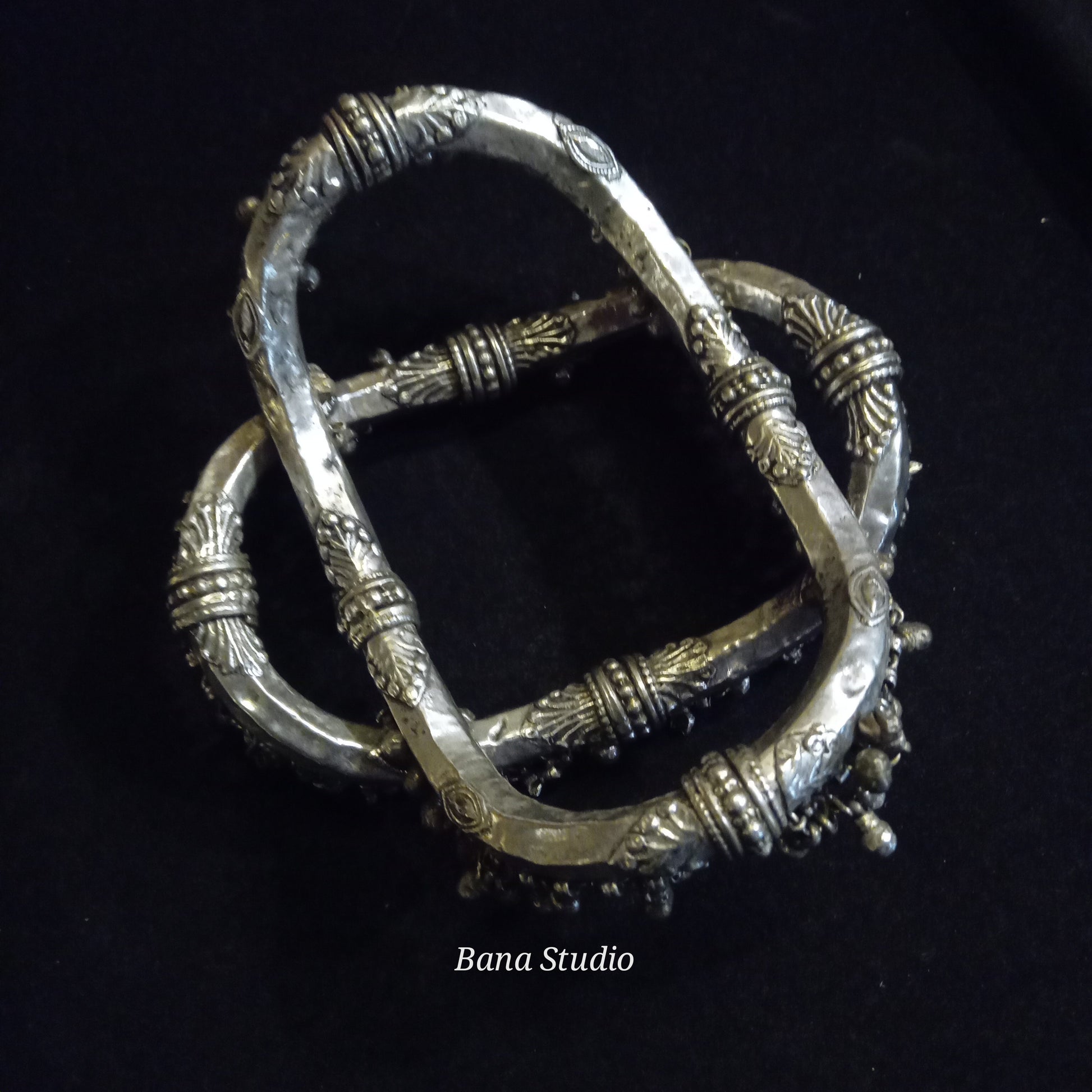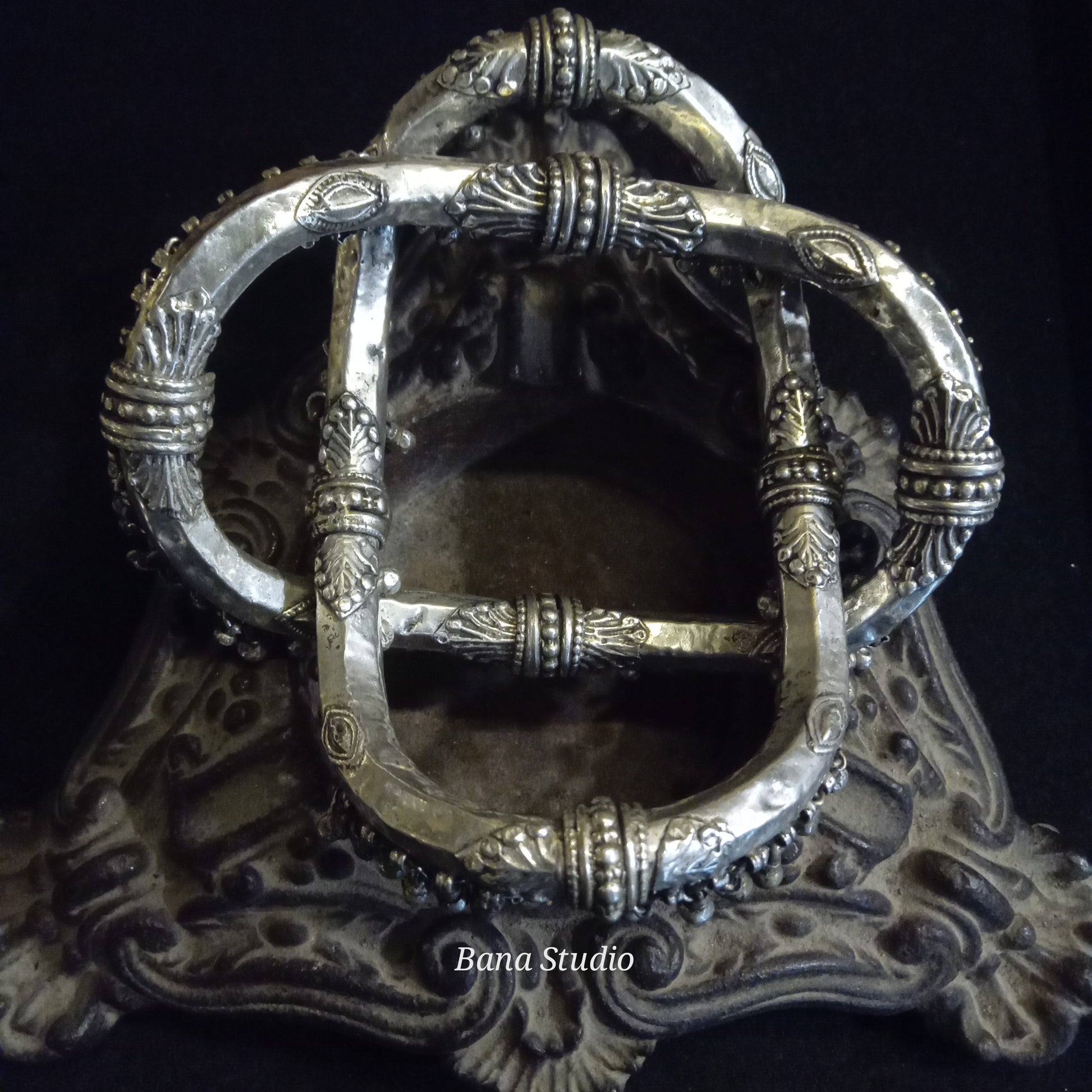 हाथ से तैयार सुंदर चांदी के कंगन।