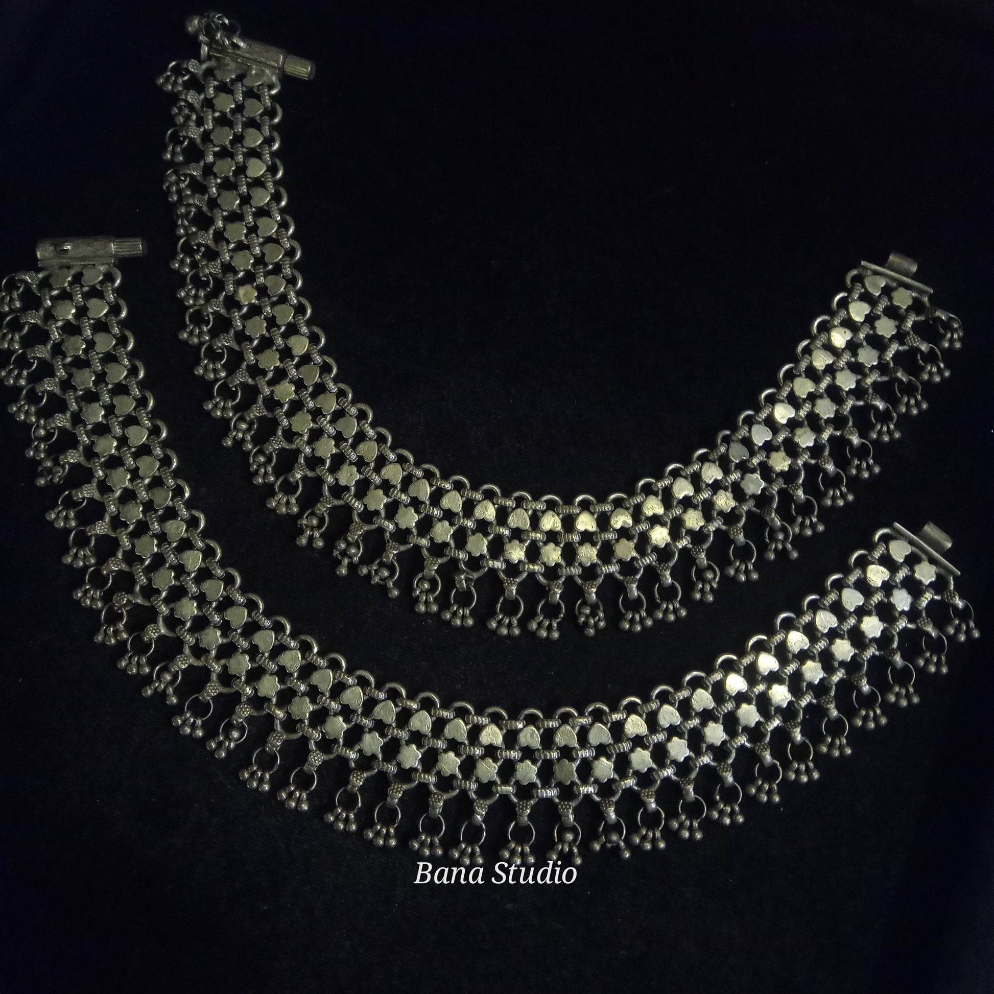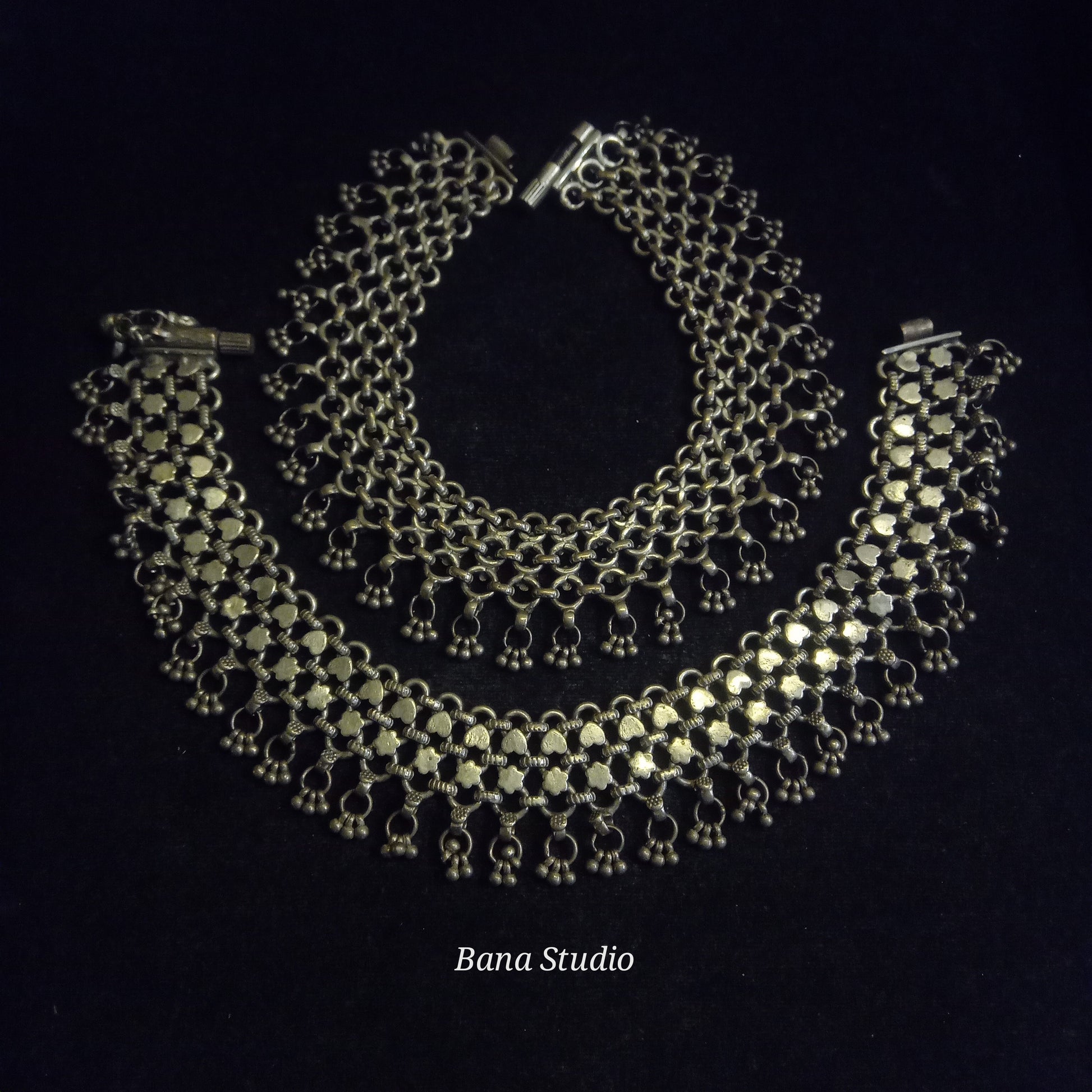 Vintage silver anklets from Rajasthan. Length 10.5 inch