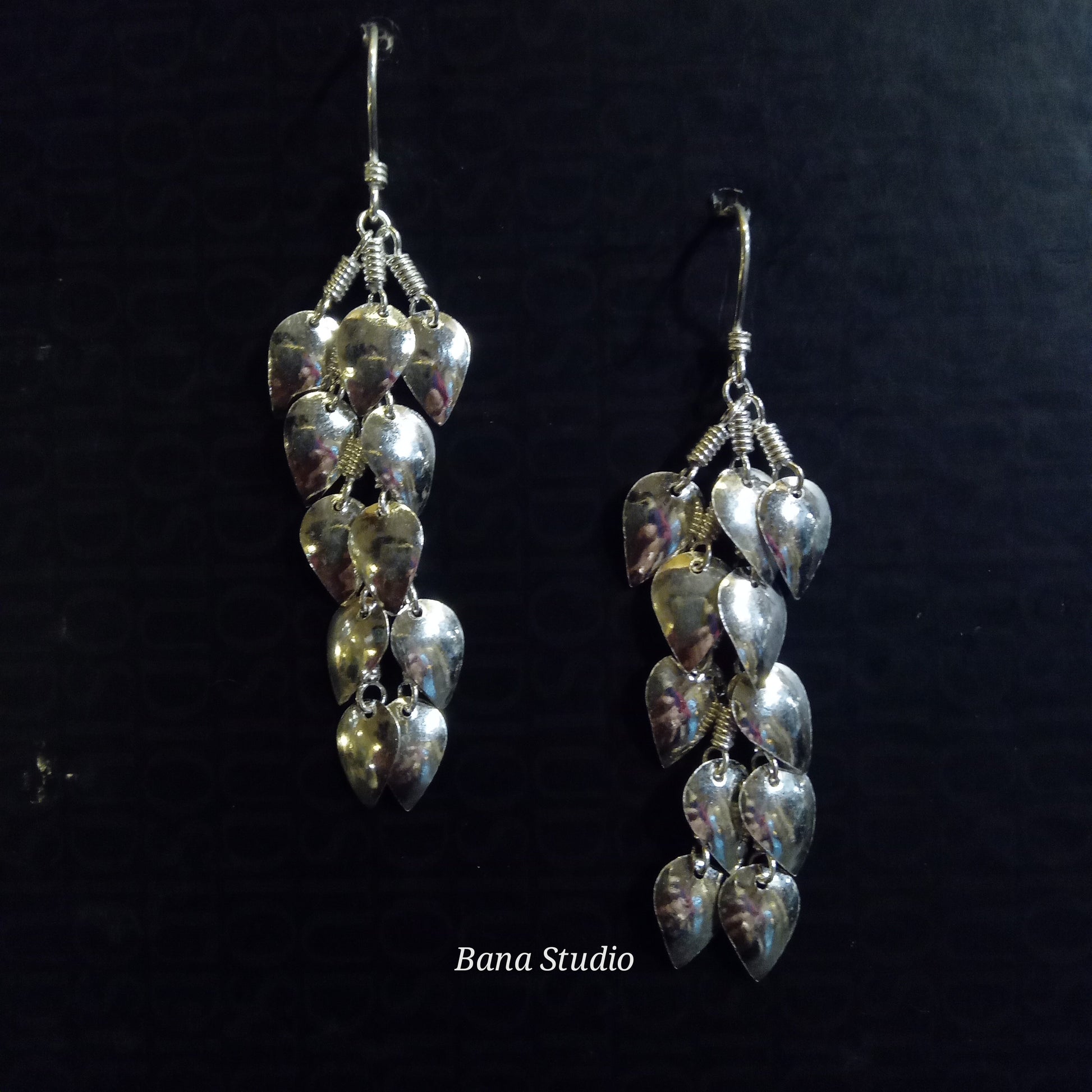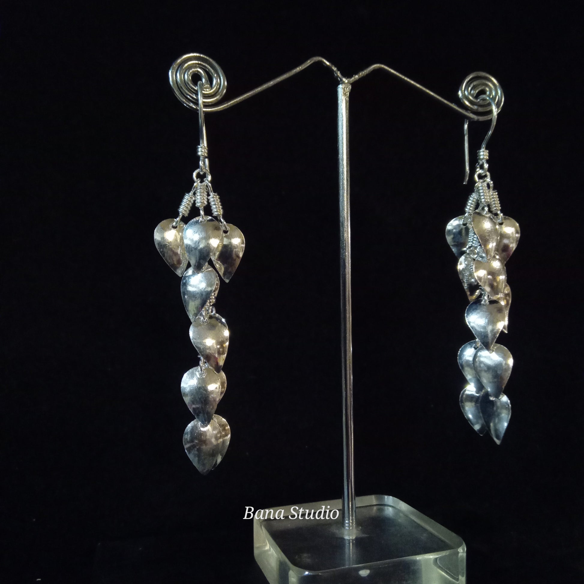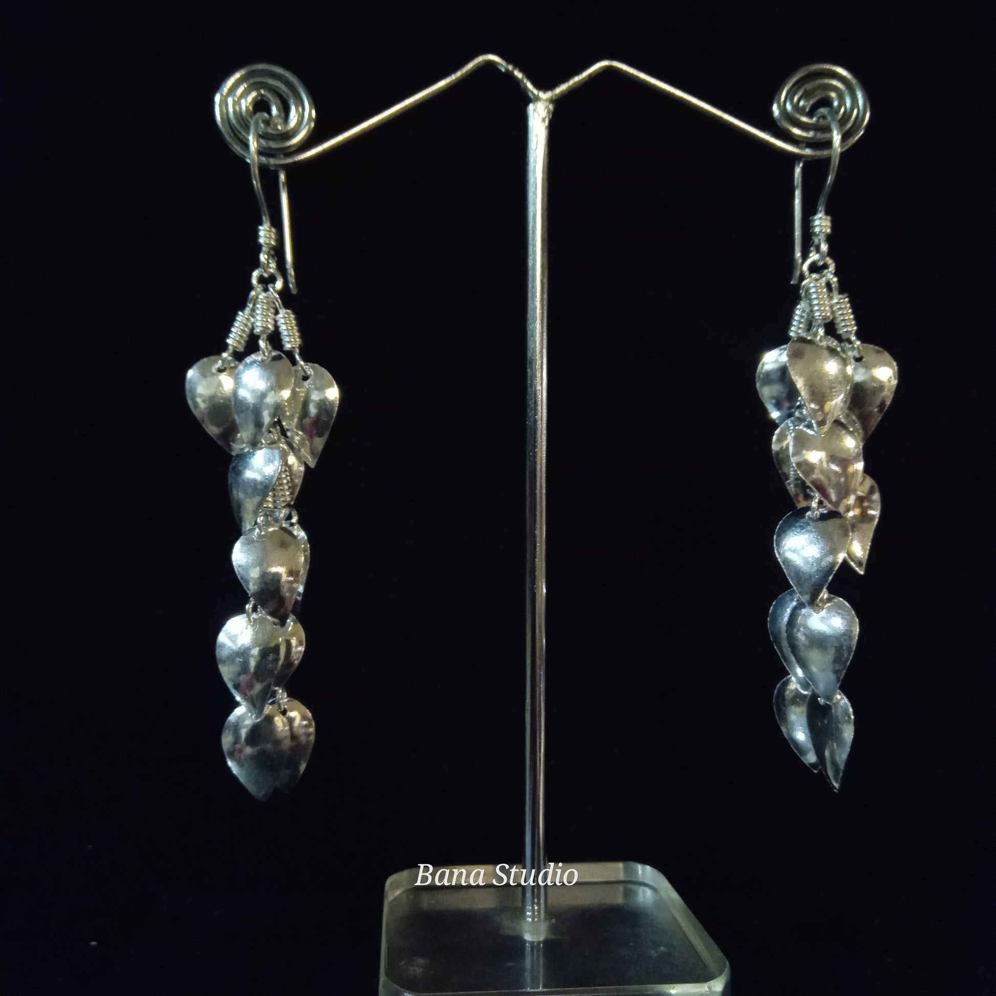 हाथ से तैयार की गई खूबसूरत चांदी की बालियां।
