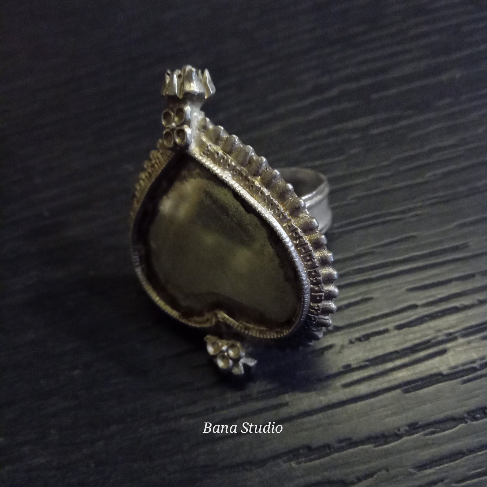 Vintage silver Aarsi ring from Rajasthan with mirror. Size 17-18
