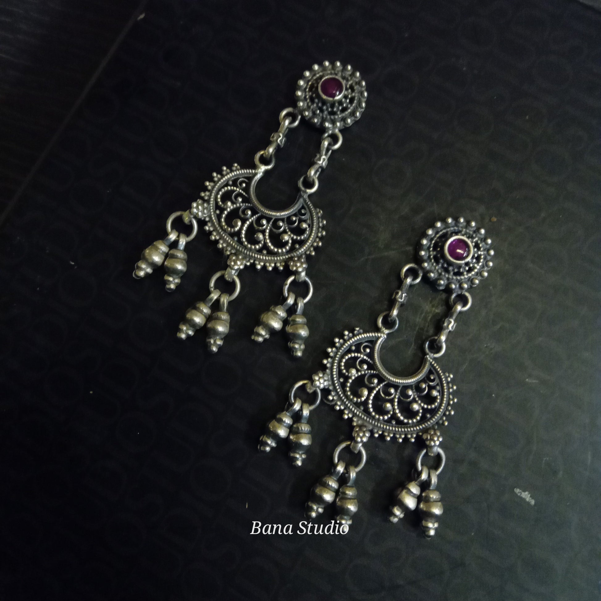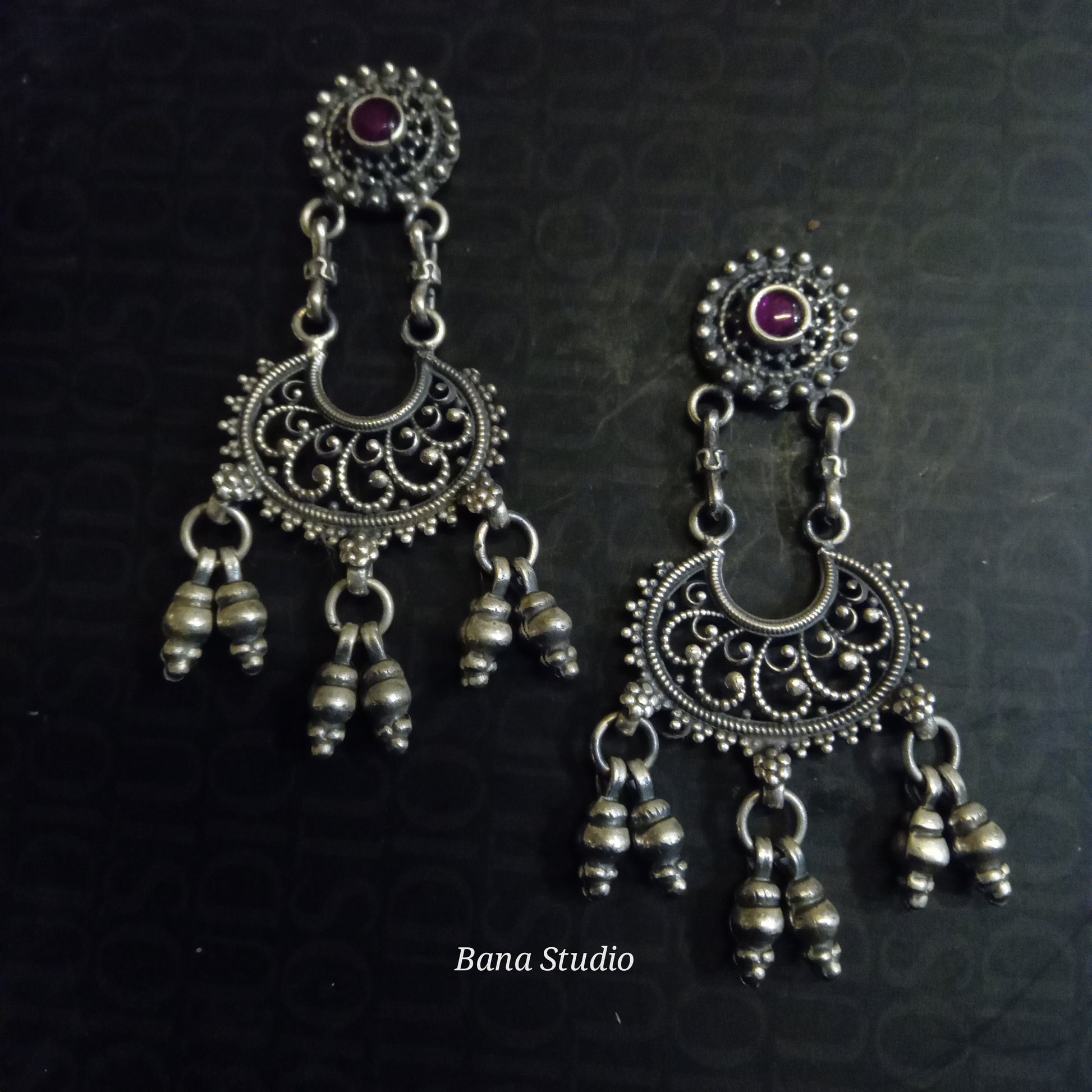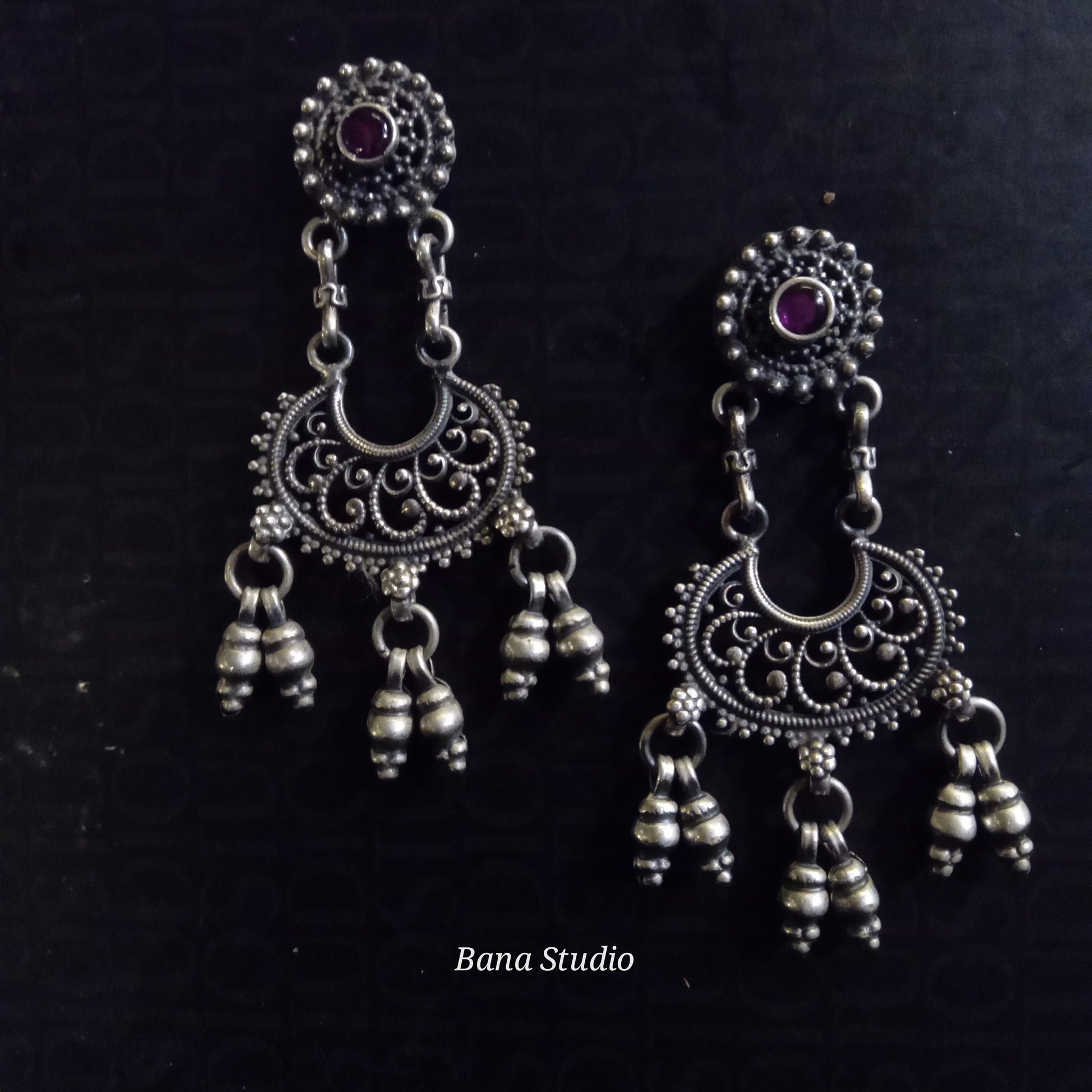 हाथ से तैयार की गई खूबसूरत चांदी की बालियां।