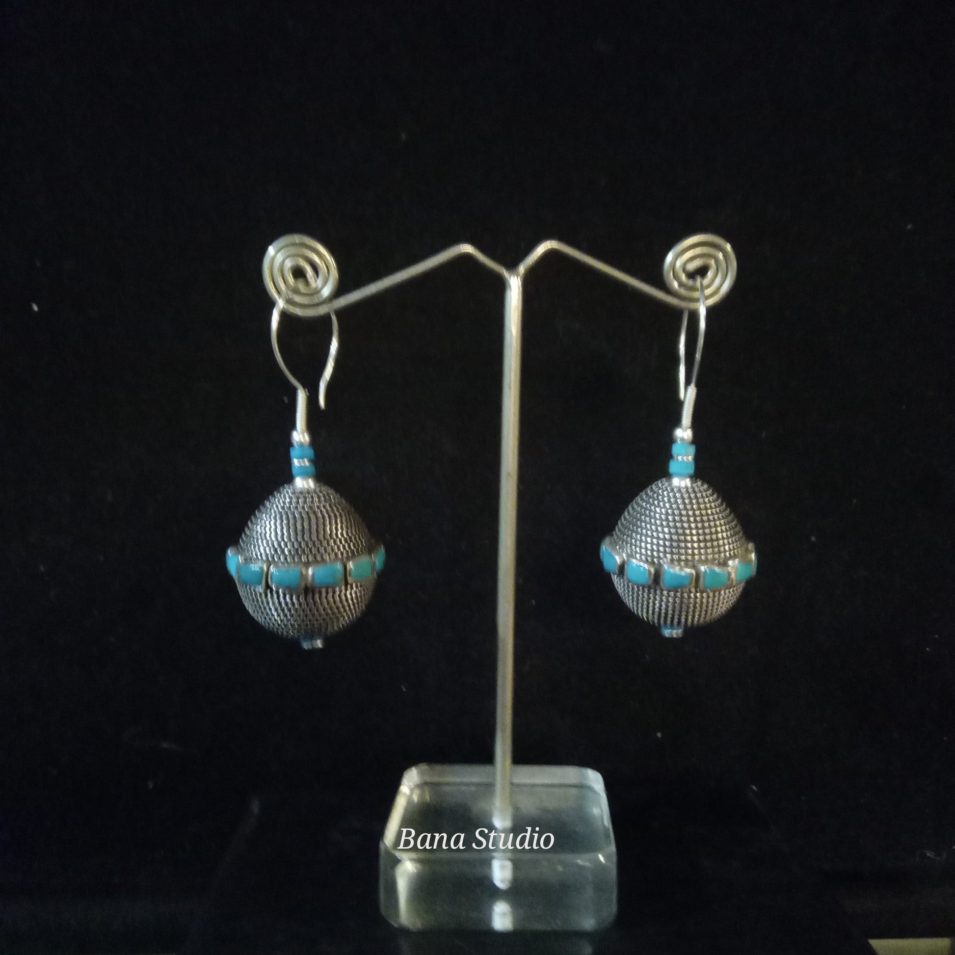 हाथ से तैयार की गई खूबसूरत चांदी की बालियां।