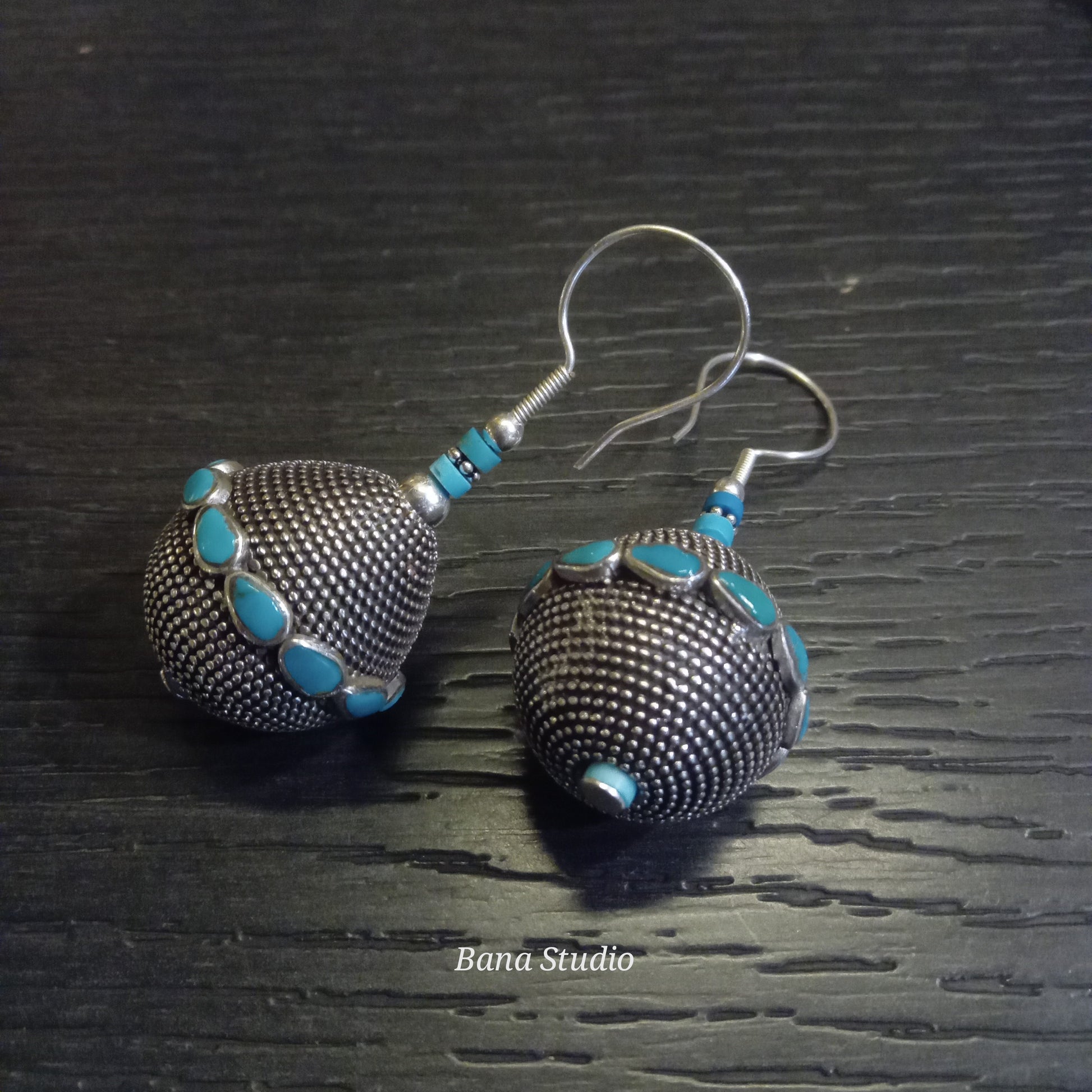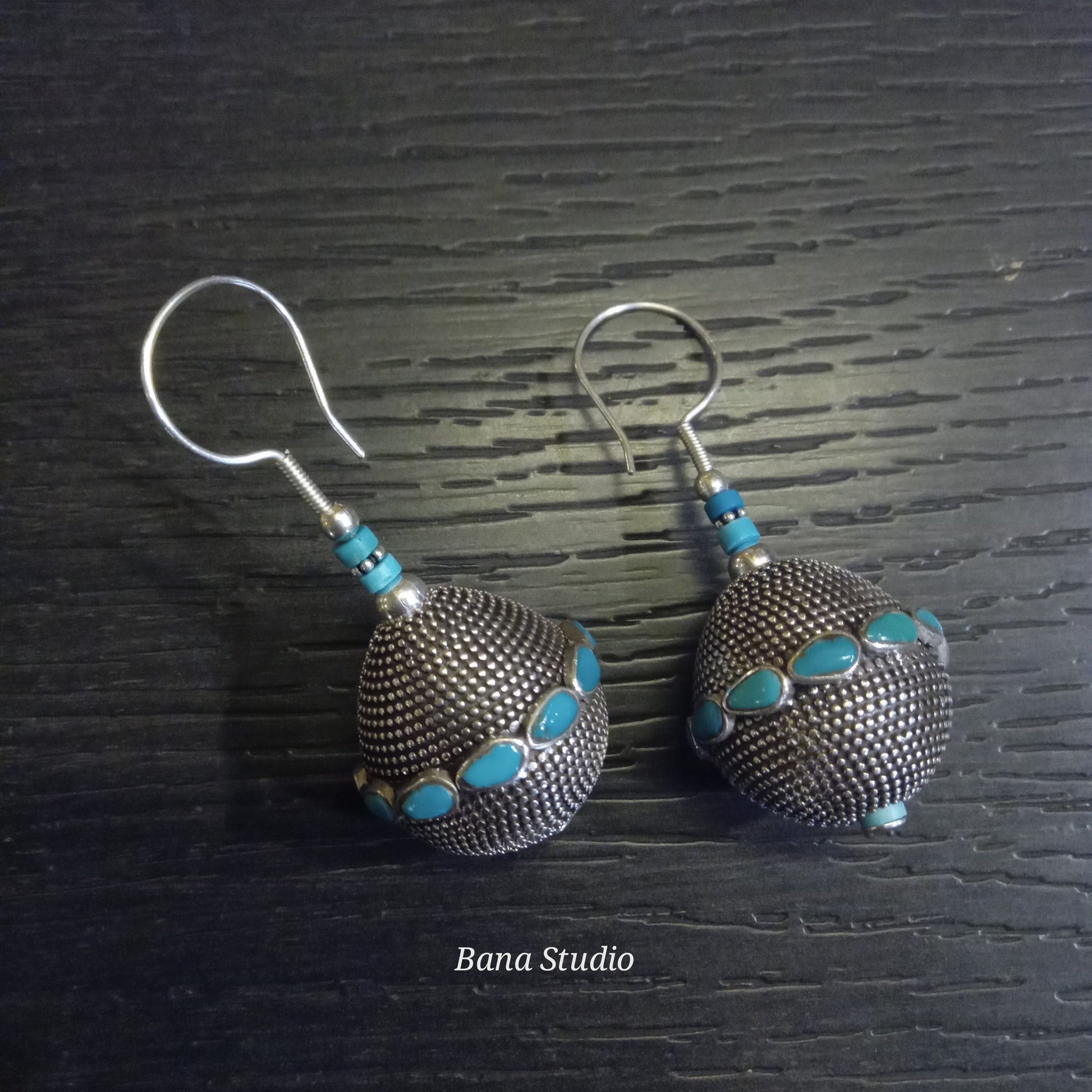 Vintage style 925 silver earrings studded with turquoise. Length 6.5