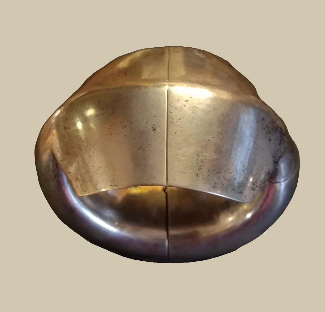 Beautiful, traditional but very modern design two part hollow vintage anklet in silver from Saurashtra, Gujarat. One quarter hinged part can be opened by a central screw. Can be worn as bracelet. Width of the flat part 7cm