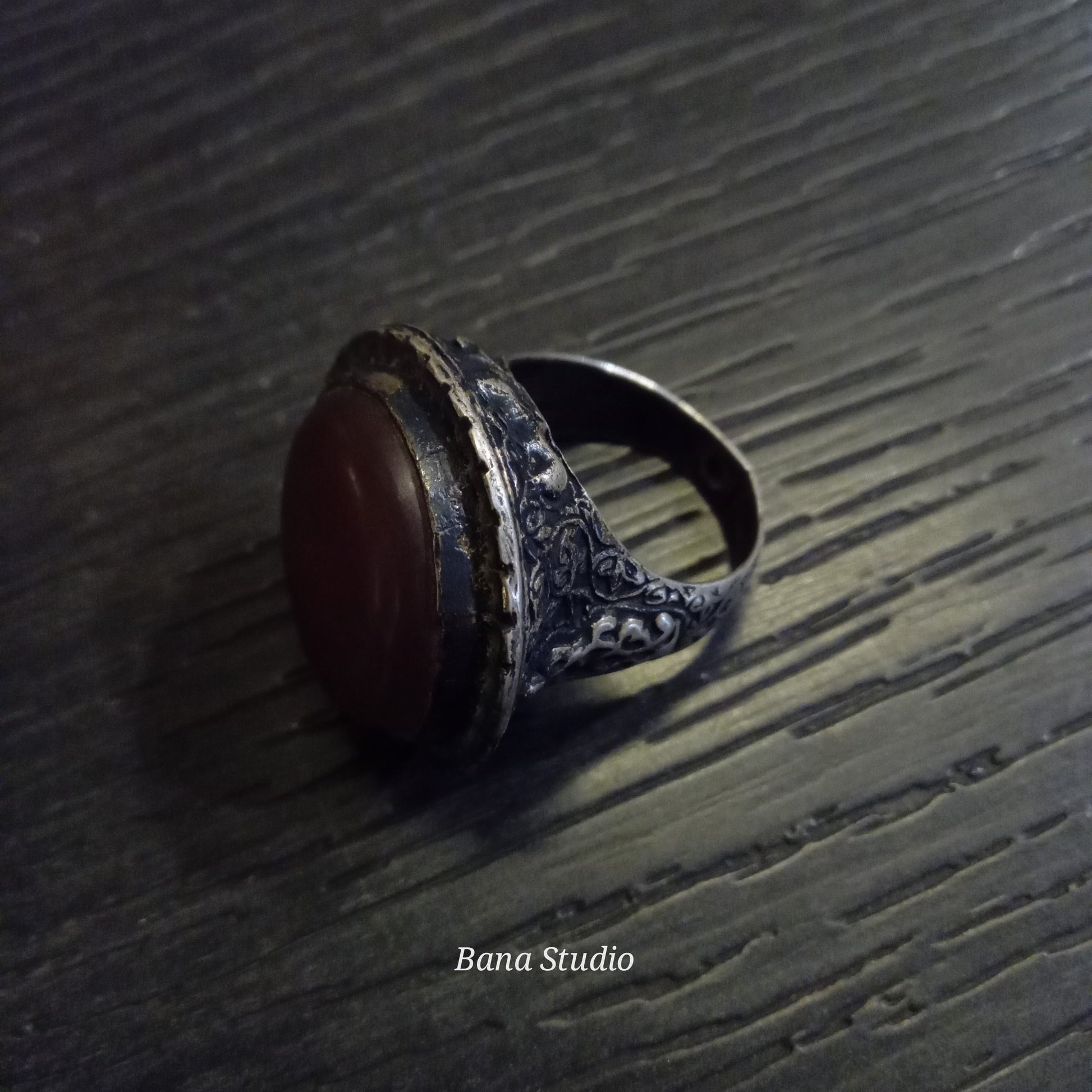 Vintage silver ring from Afghanistan studded with carnelian. Size 18