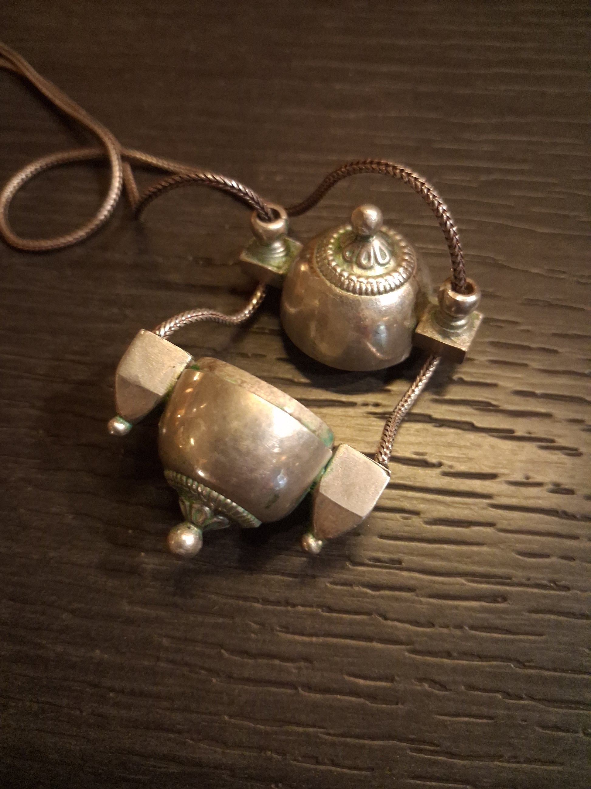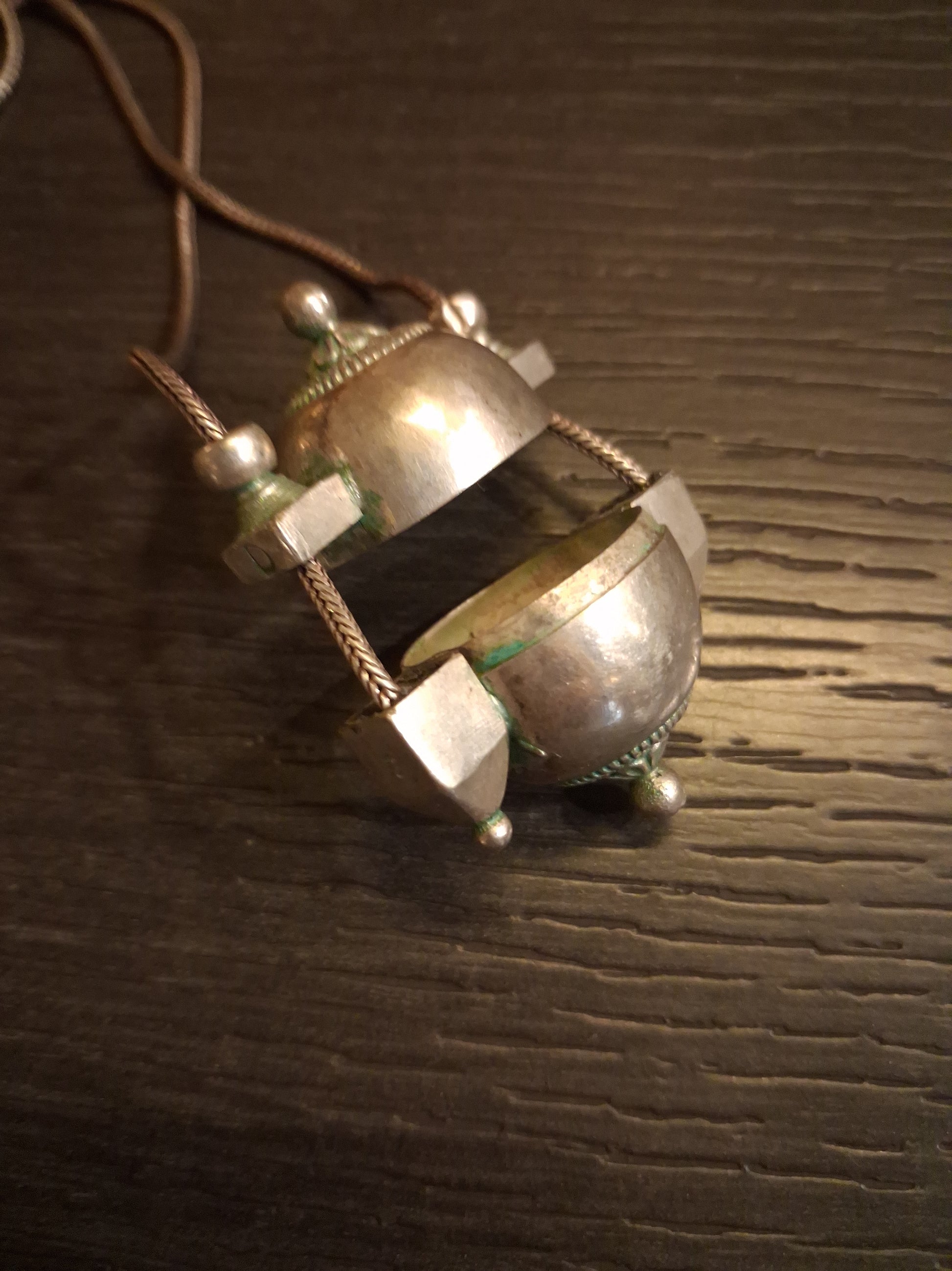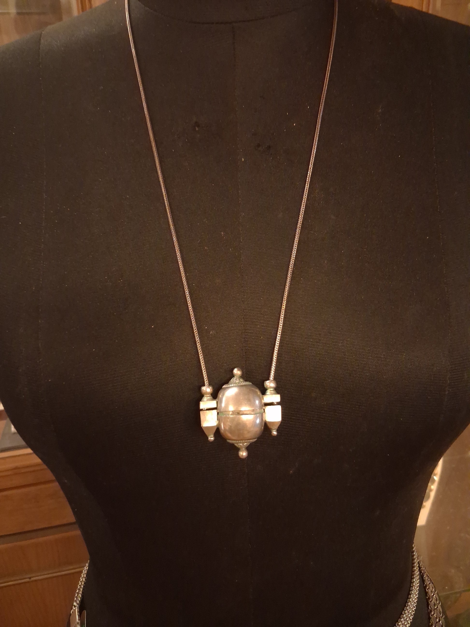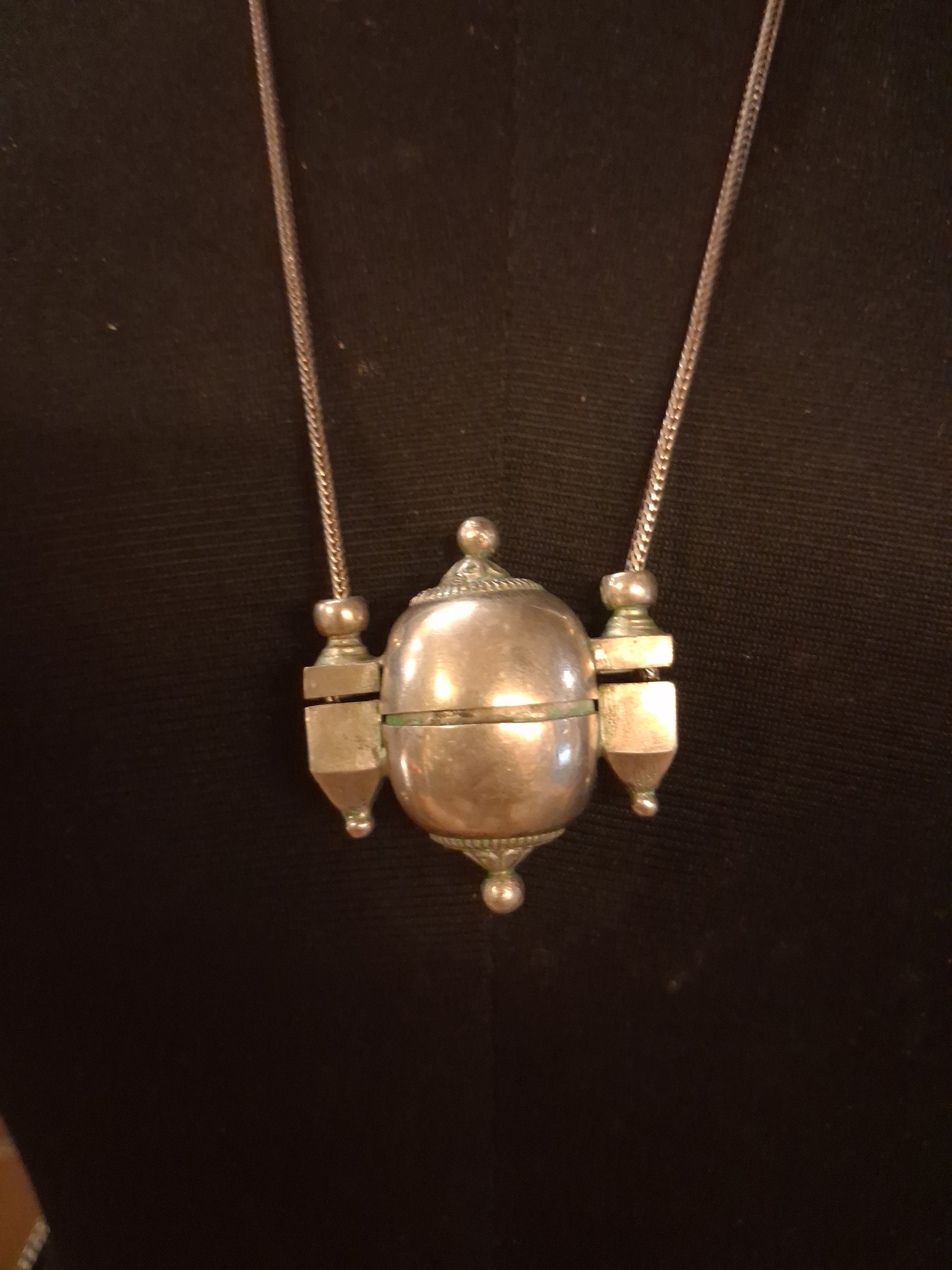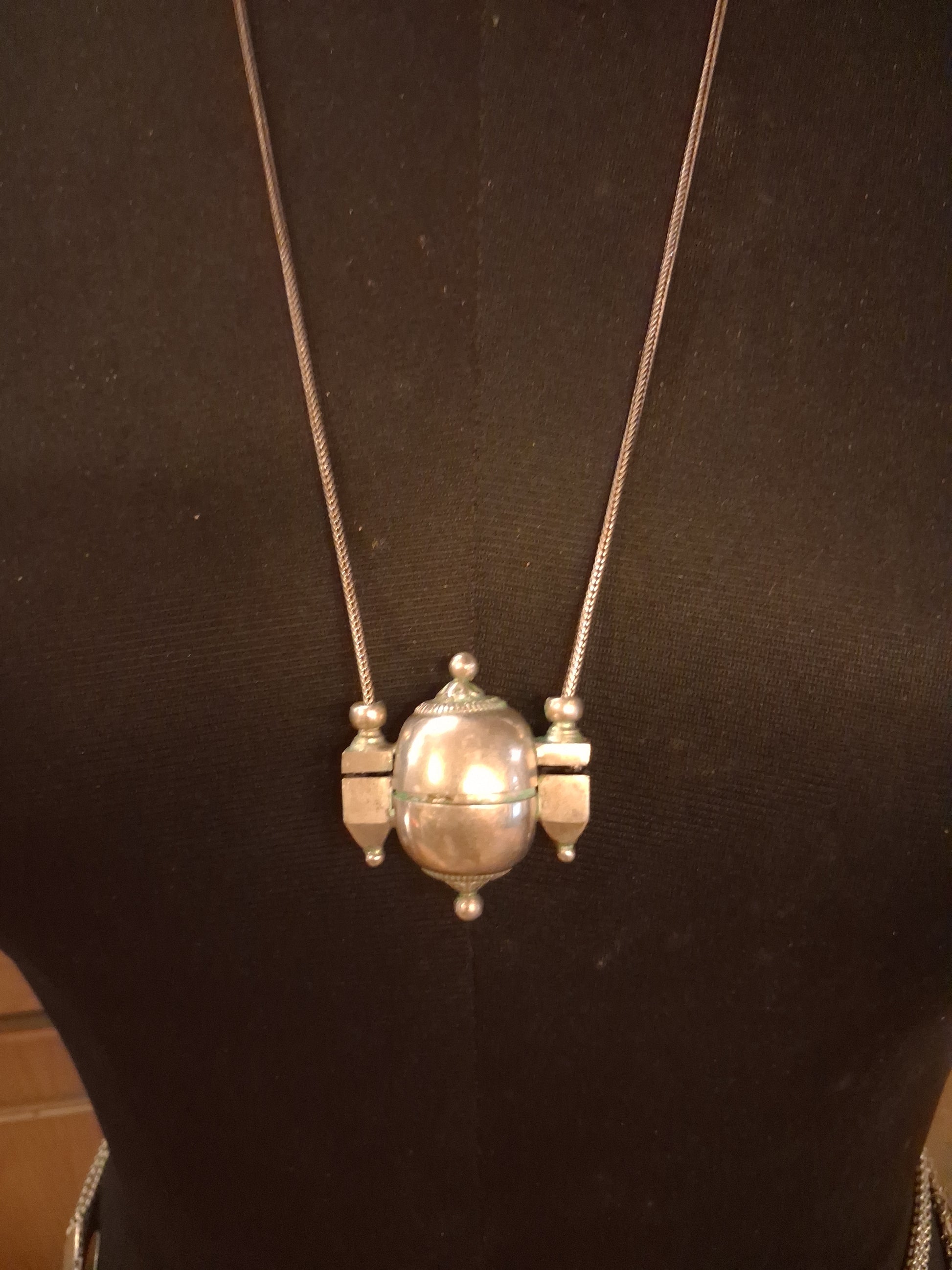 Vintage silver amulet lingam casket from Karnataka with silver chain. Drop of the necklace 14 inch KSg