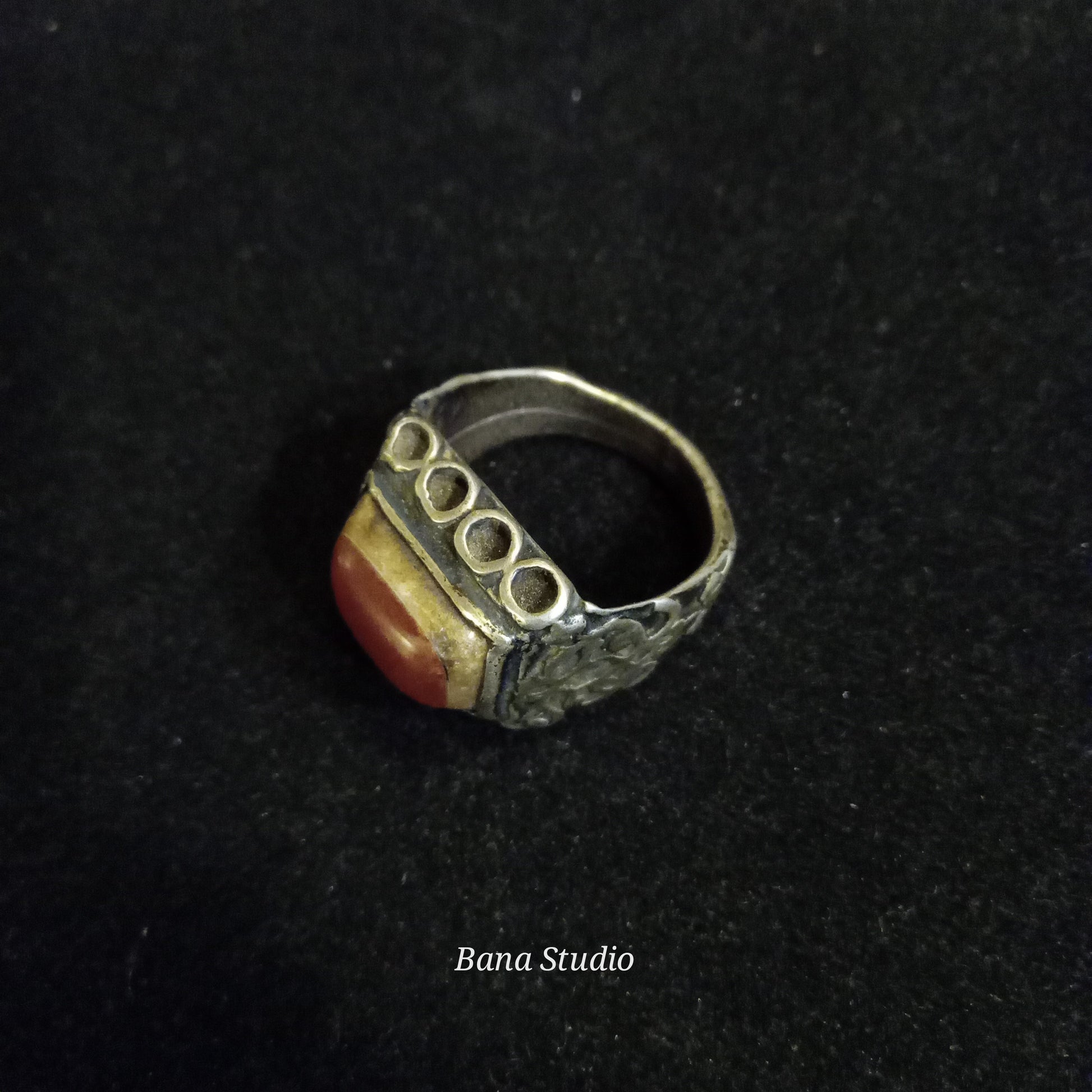 Extremely beautiful one of a kind vintage silver ring from Afghanistan studded with carnelian. Size 15