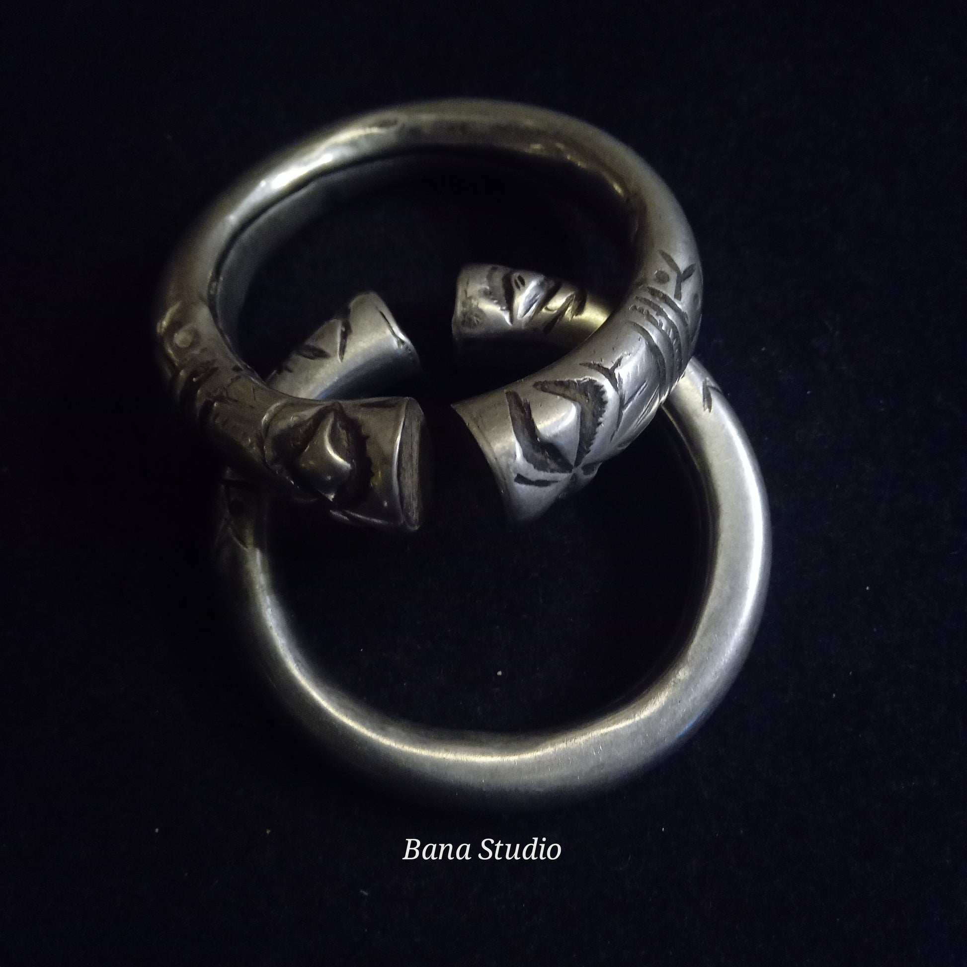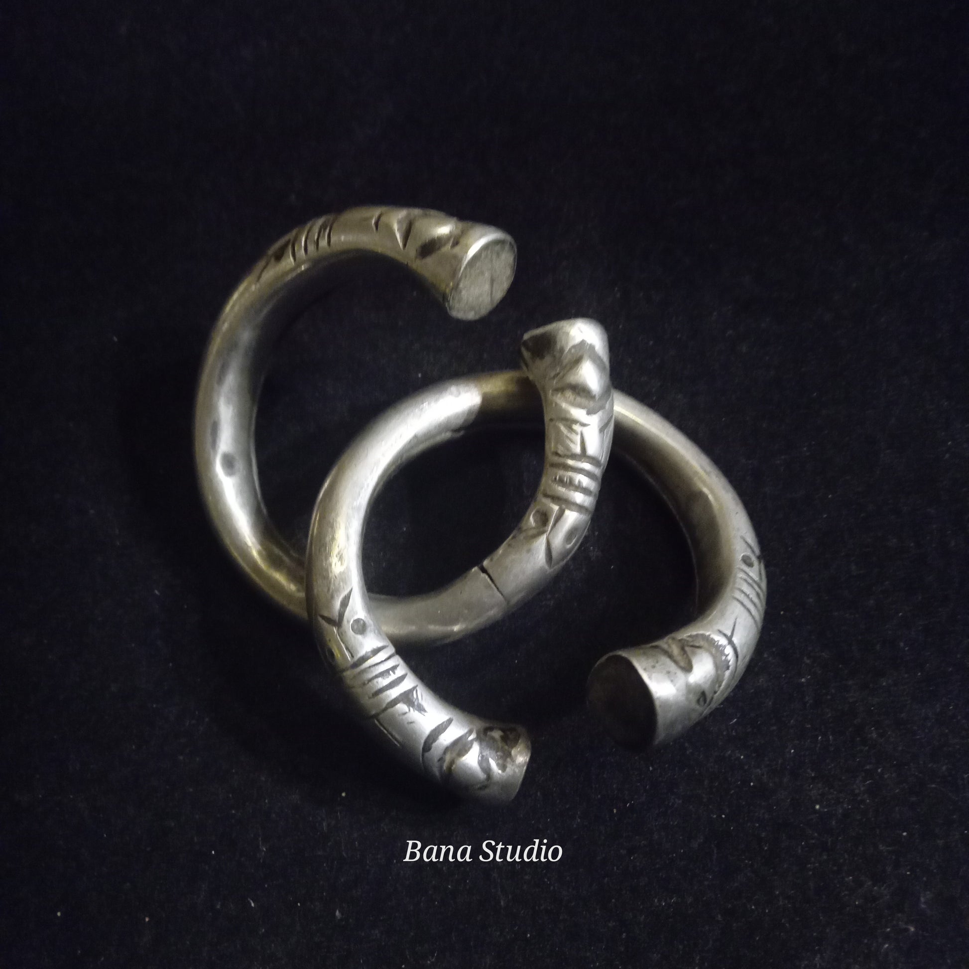 Small size Vintage silver flexible bracelet from Himachal Pradesh. Inside diameter 4.5cm