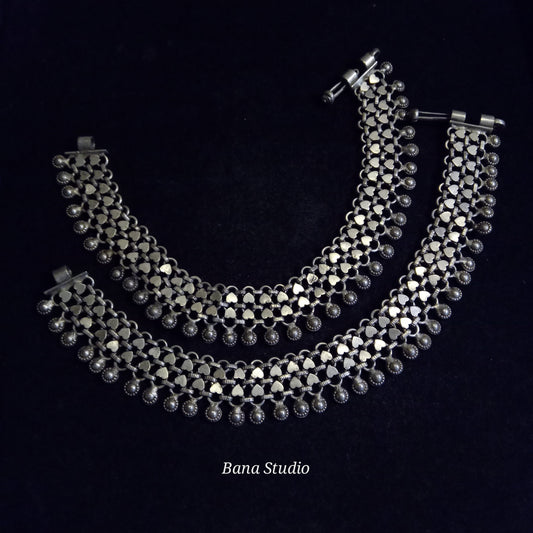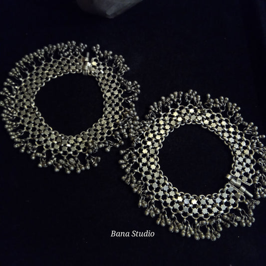 கையால் வடிவமைக்கப்பட்ட நேர்த்தியான வெள்ளி வளையல்கள்.