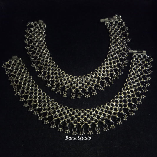 கையால் வடிவமைக்கப்பட்ட நேர்த்தியான வெள்ளி நெக்லஸ்கள்.
