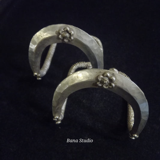 கையால் வடிவமைக்கப்பட்ட நேர்த்தியான வெள்ளி வளையல்கள்.