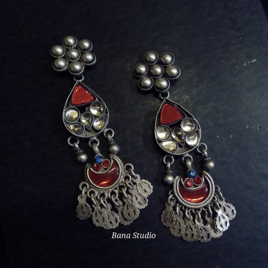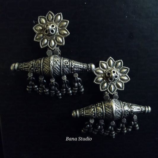 கையால் வடிவமைக்கப்பட்ட நேர்த்தியான வெள்ளி காதணிகள்.