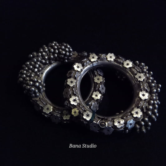கையால் வடிவமைக்கப்பட்ட நேர்த்தியான வெள்ளி வளையல்கள்.