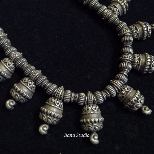 கையால் வடிவமைக்கப்பட்ட நேர்த்தியான வெள்ளி நெக்லஸ்கள்.