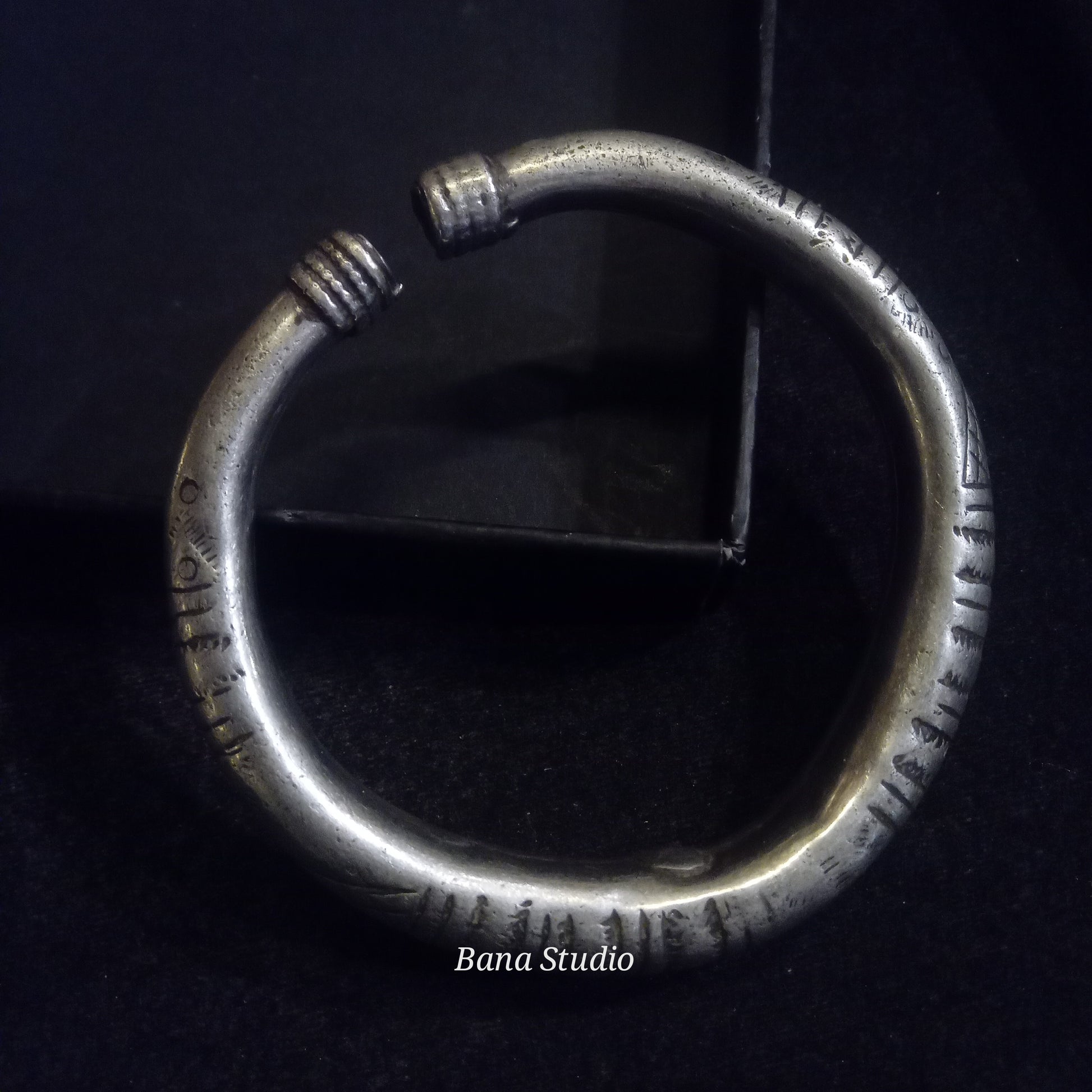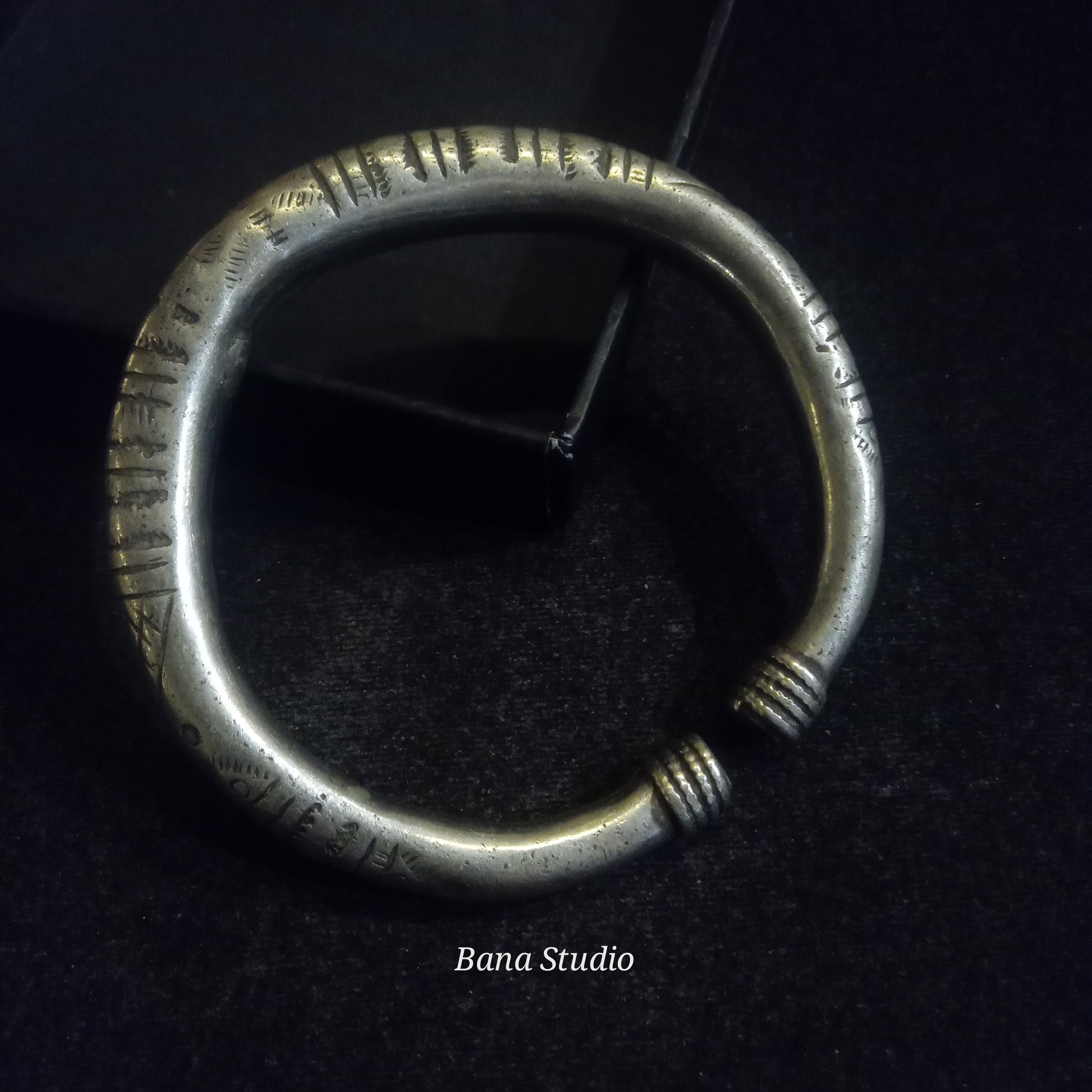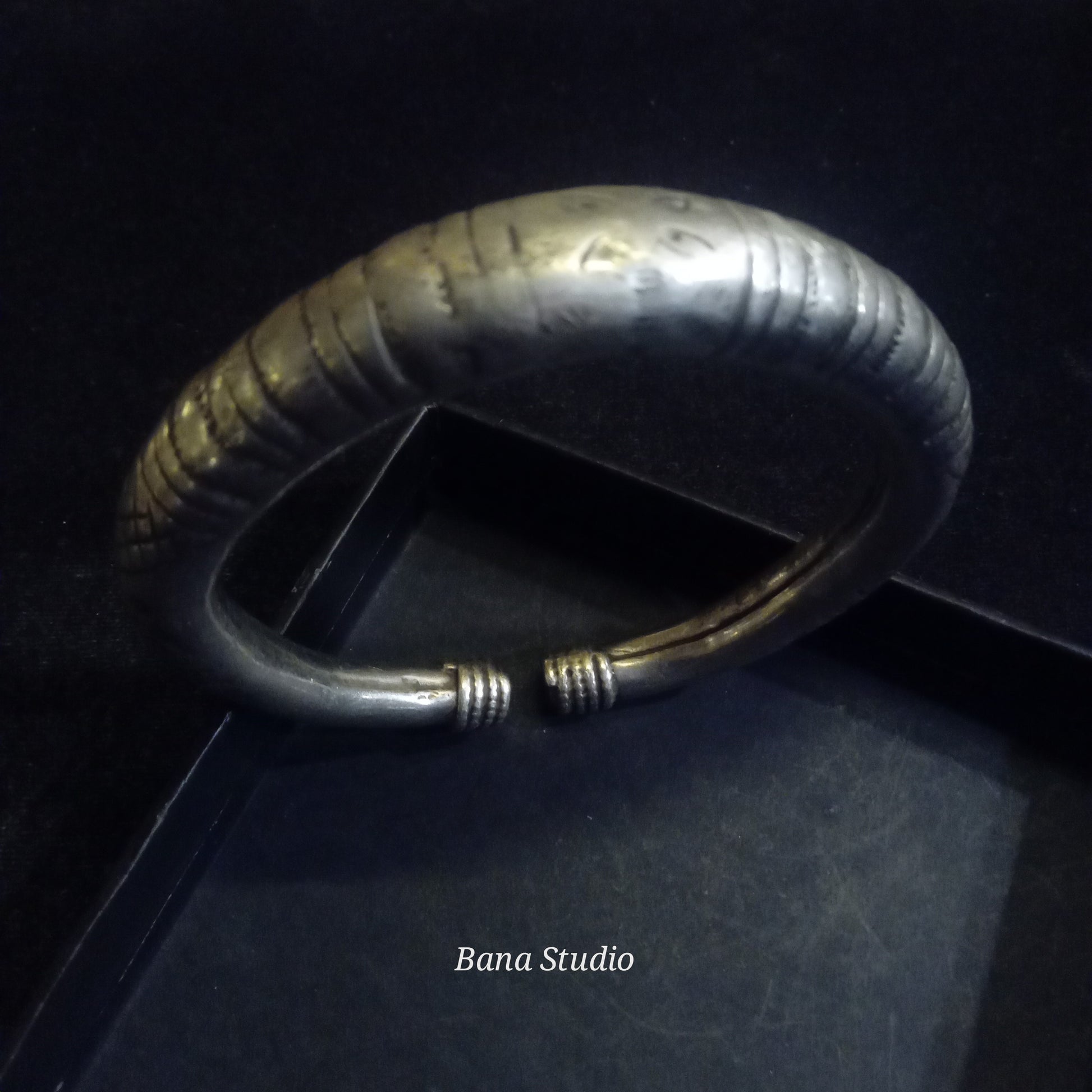 Vintage silver unisex bracelet from Rajasthan. Inside diameter 7cm