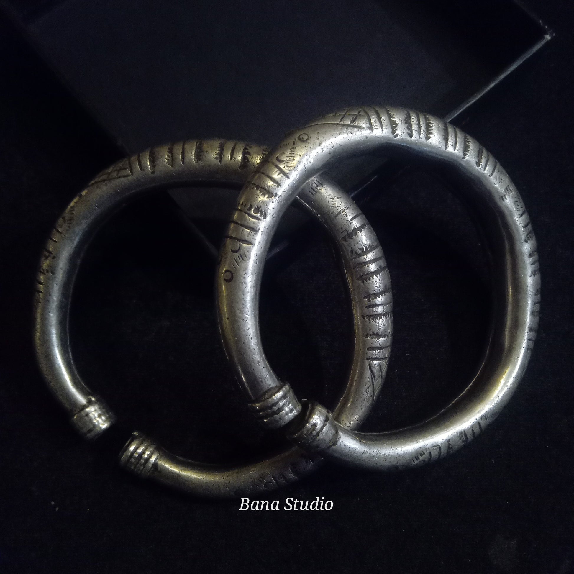 கையால் வடிவமைக்கப்பட்ட நேர்த்தியான வெள்ளி வளையல்கள்.