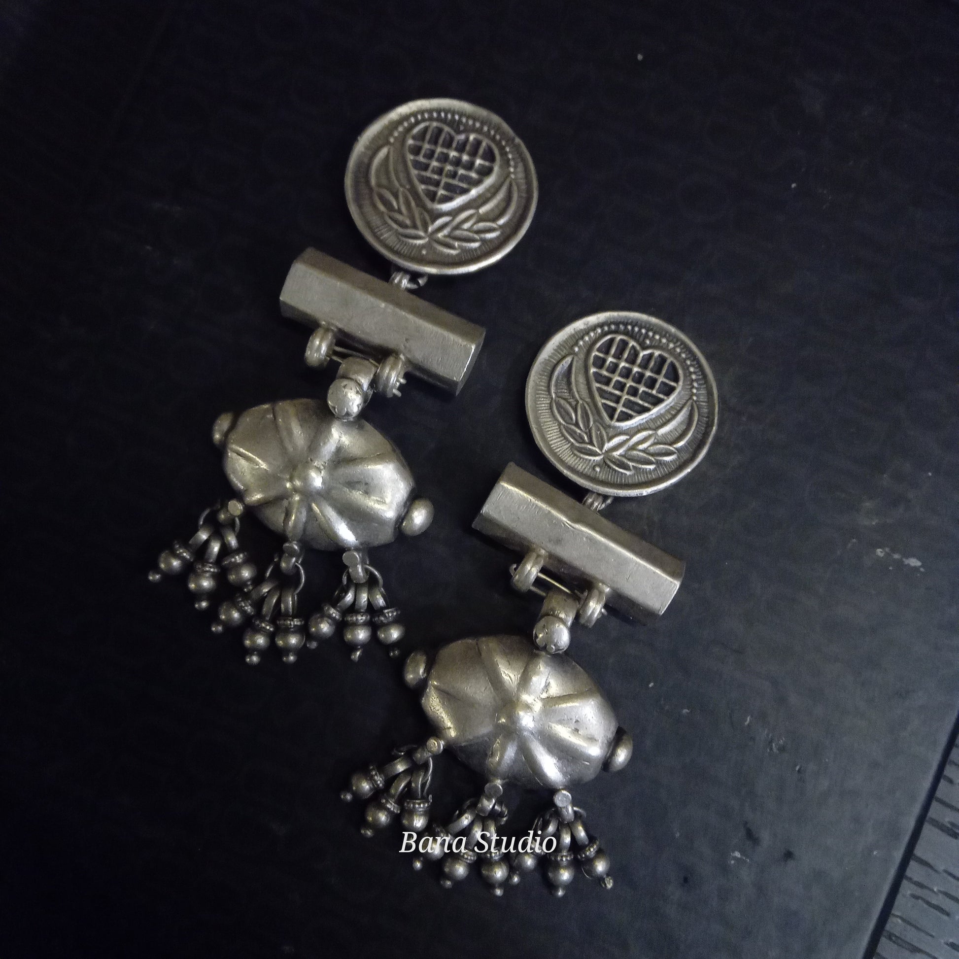 Made up vintage silver earrings from Rajasthan. Length 8cm