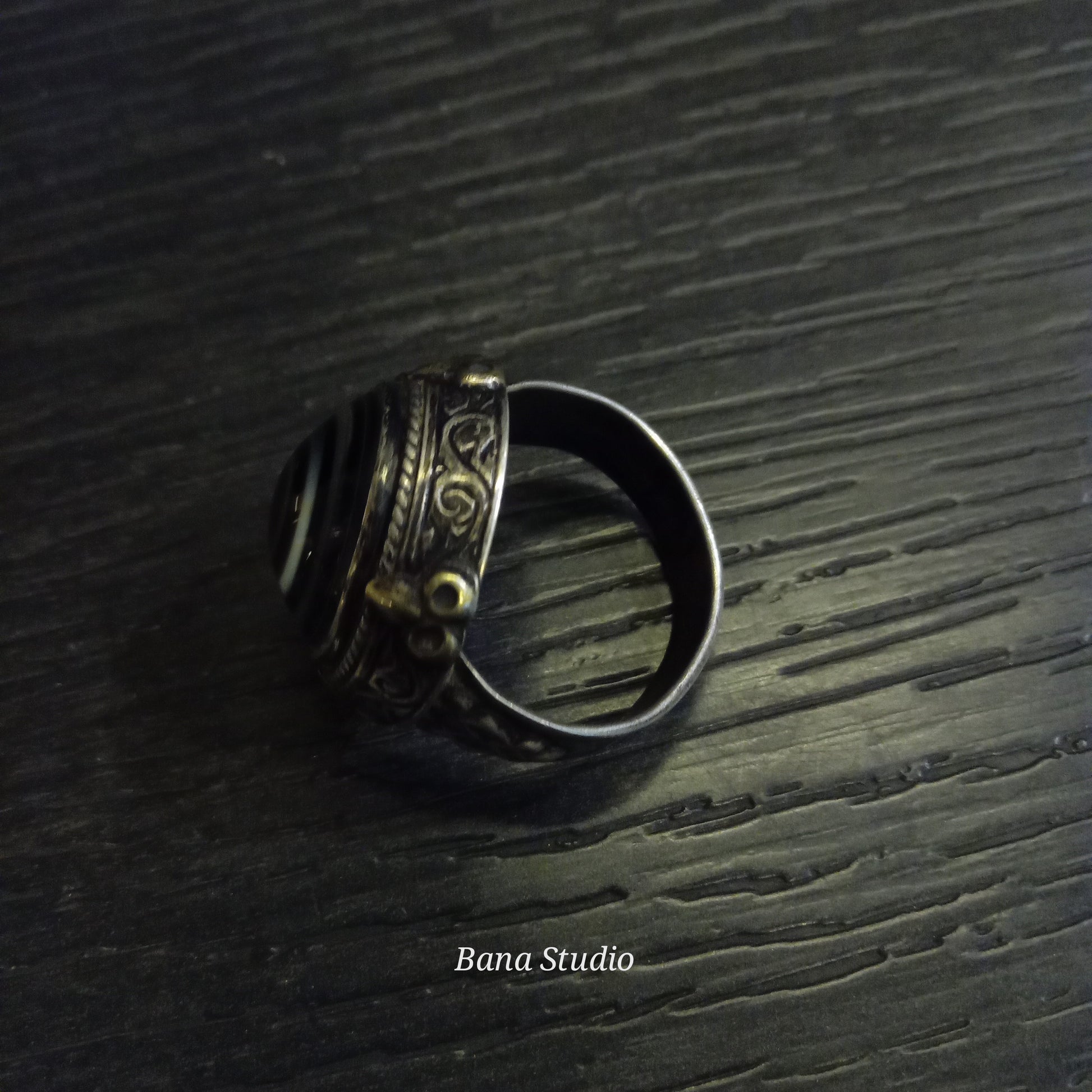 Vintage silver ring from Afghanistan studded with banded agate.
