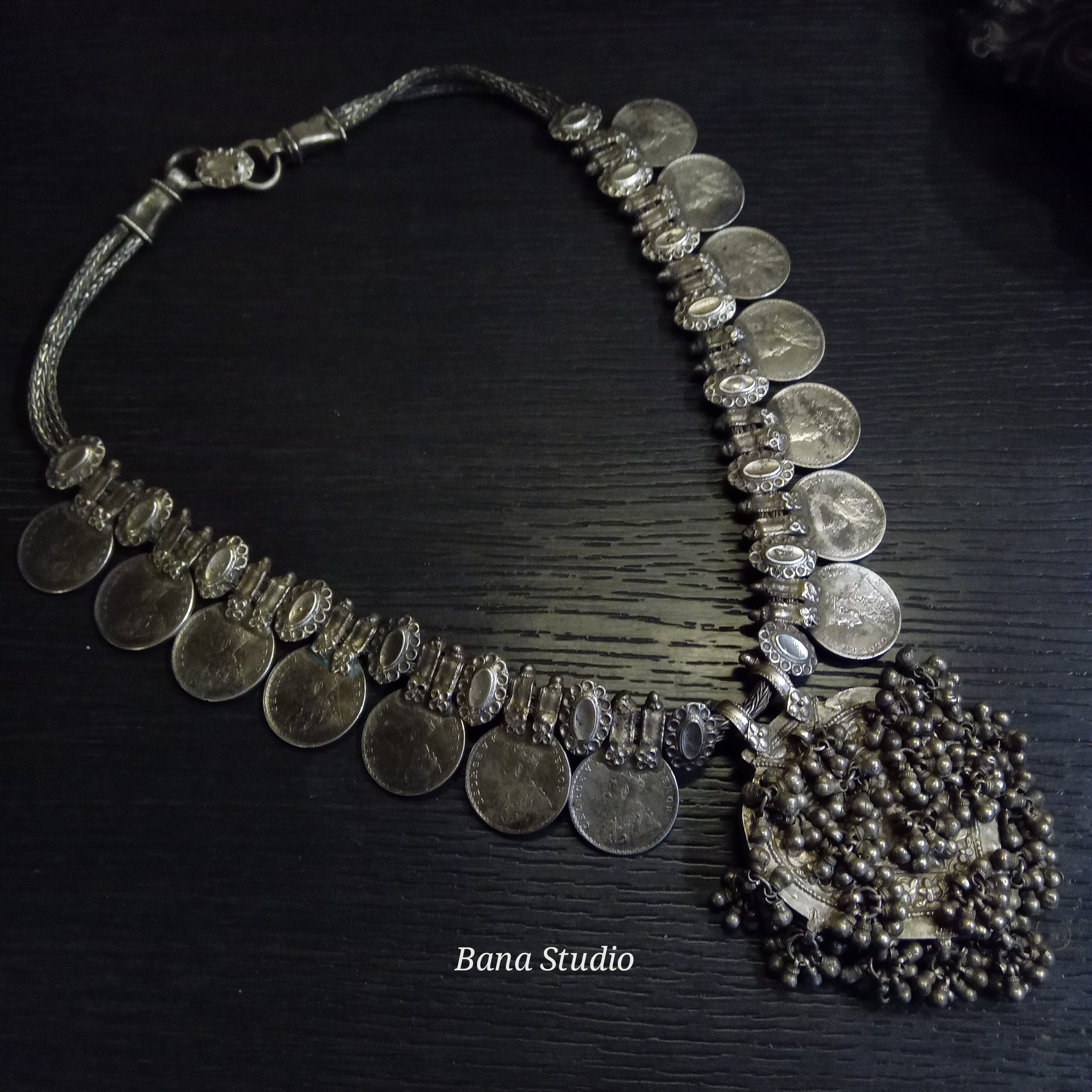 Vintage silver British coin necklace from Gujarat.