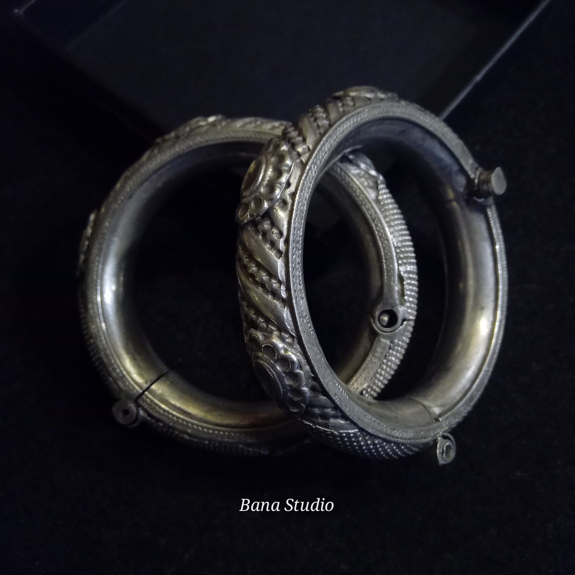 கையால் வடிவமைக்கப்பட்ட நேர்த்தியான வெள்ளி வளையல்கள்.