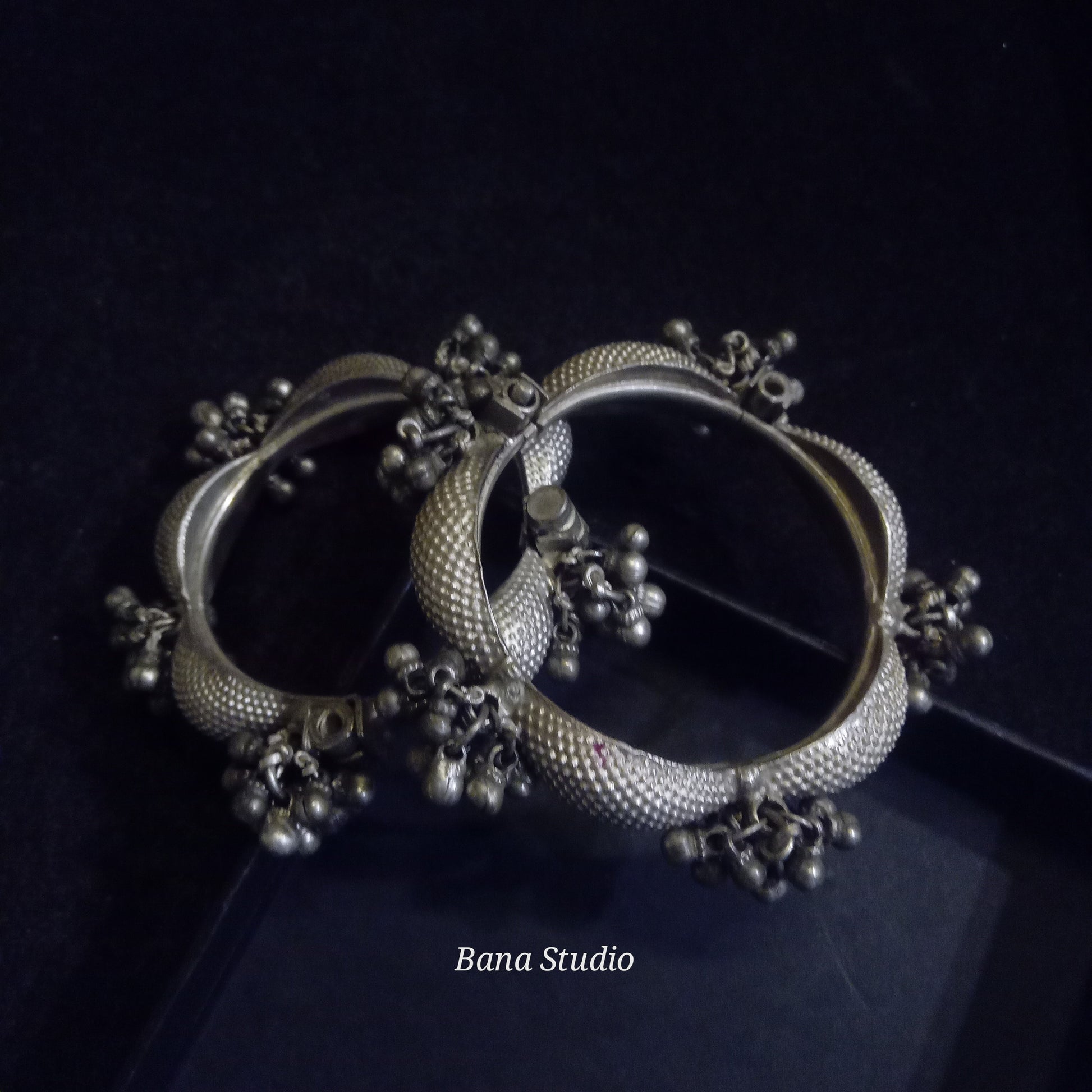கையால் வடிவமைக்கப்பட்ட நேர்த்தியான வெள்ளி வளையல்கள்.