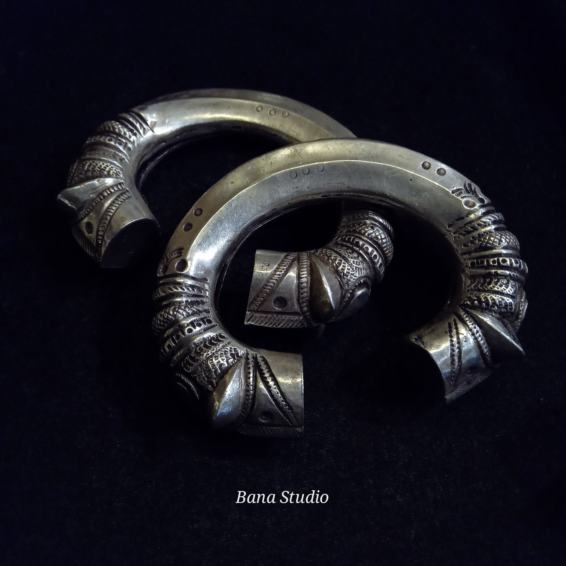 கையால் வடிவமைக்கப்பட்ட நேர்த்தியான வெள்ளி வளையல்கள்.