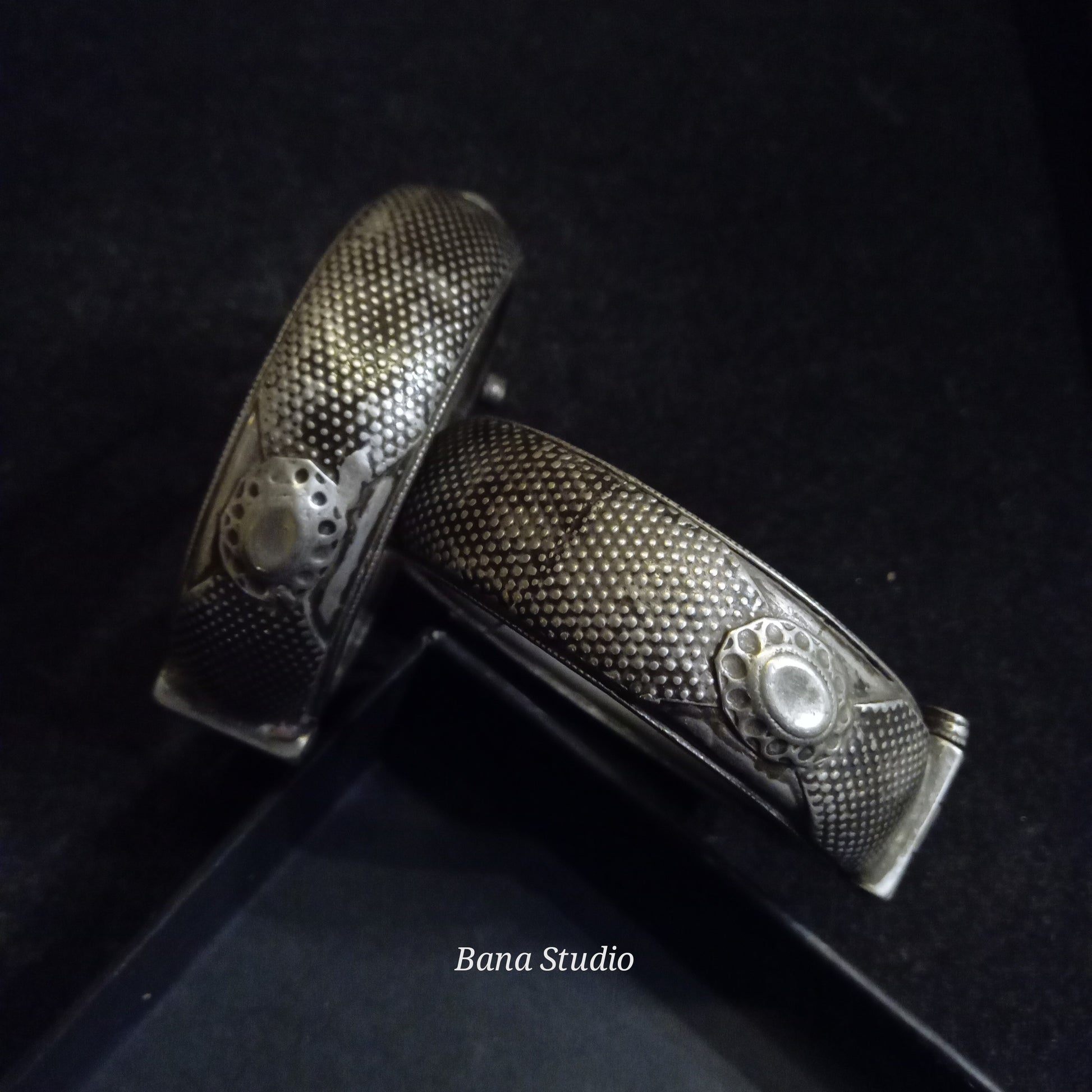 கையால் வடிவமைக்கப்பட்ட நேர்த்தியான வெள்ளி வளையல்கள்.