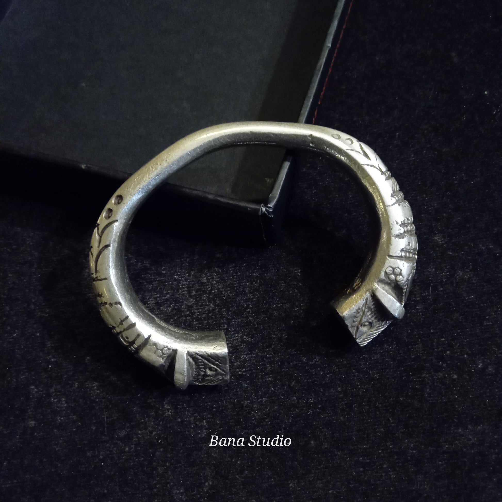 Vintage silver bracelet with Tiger head from Himachal Pradesh. Size 2.4