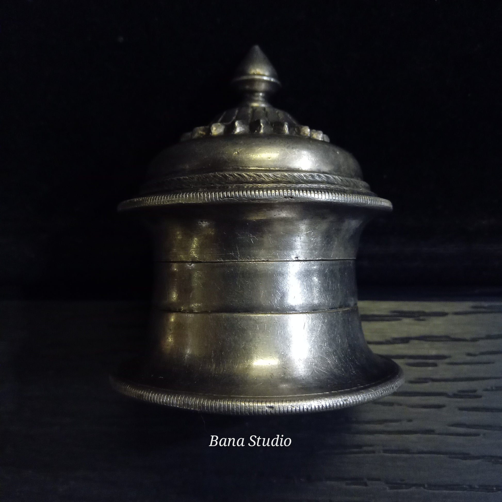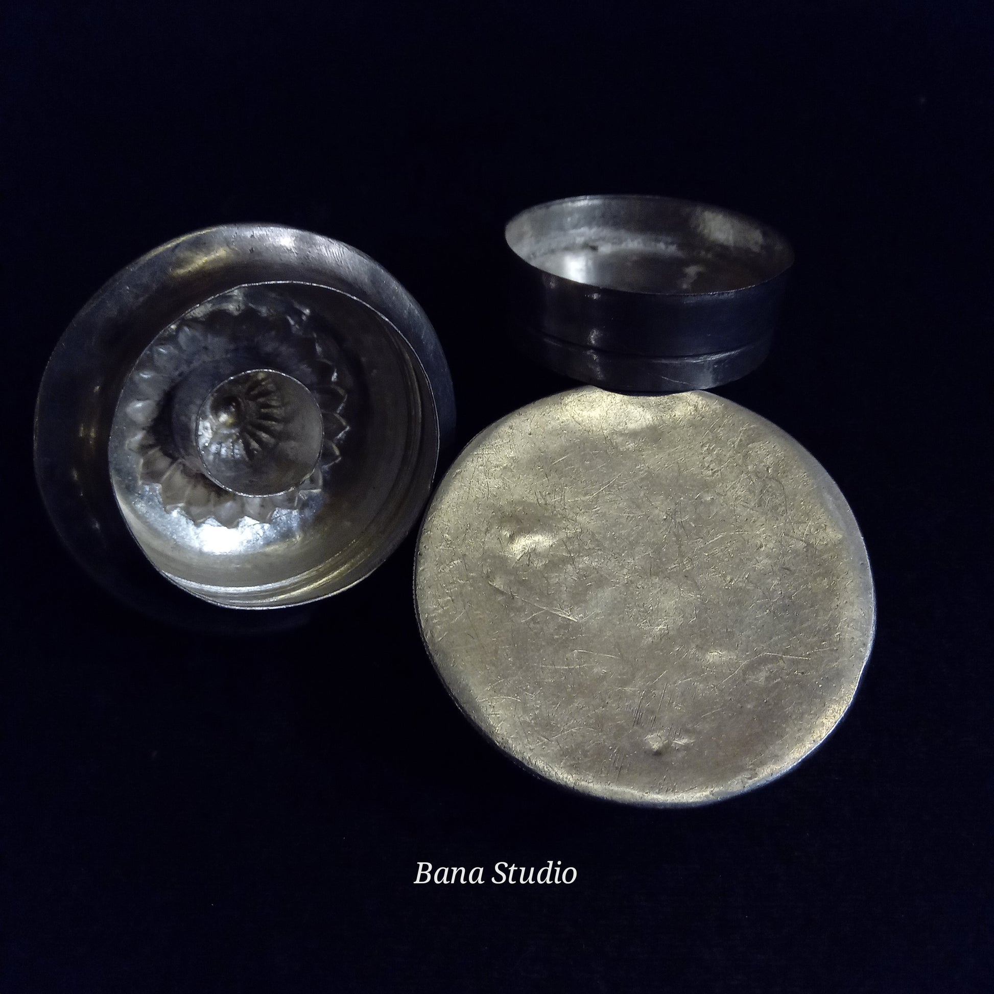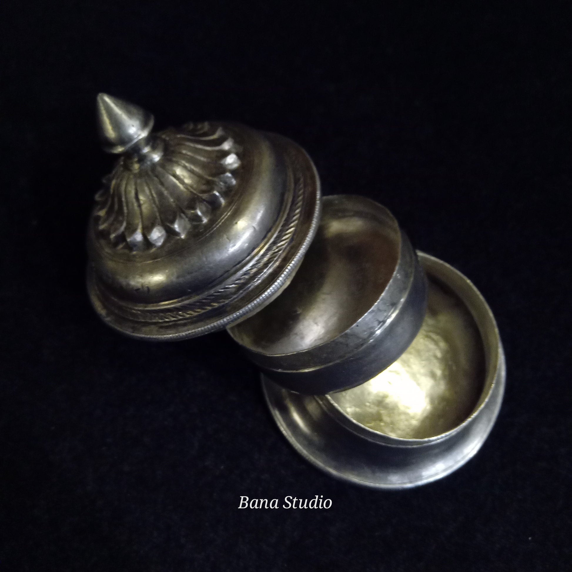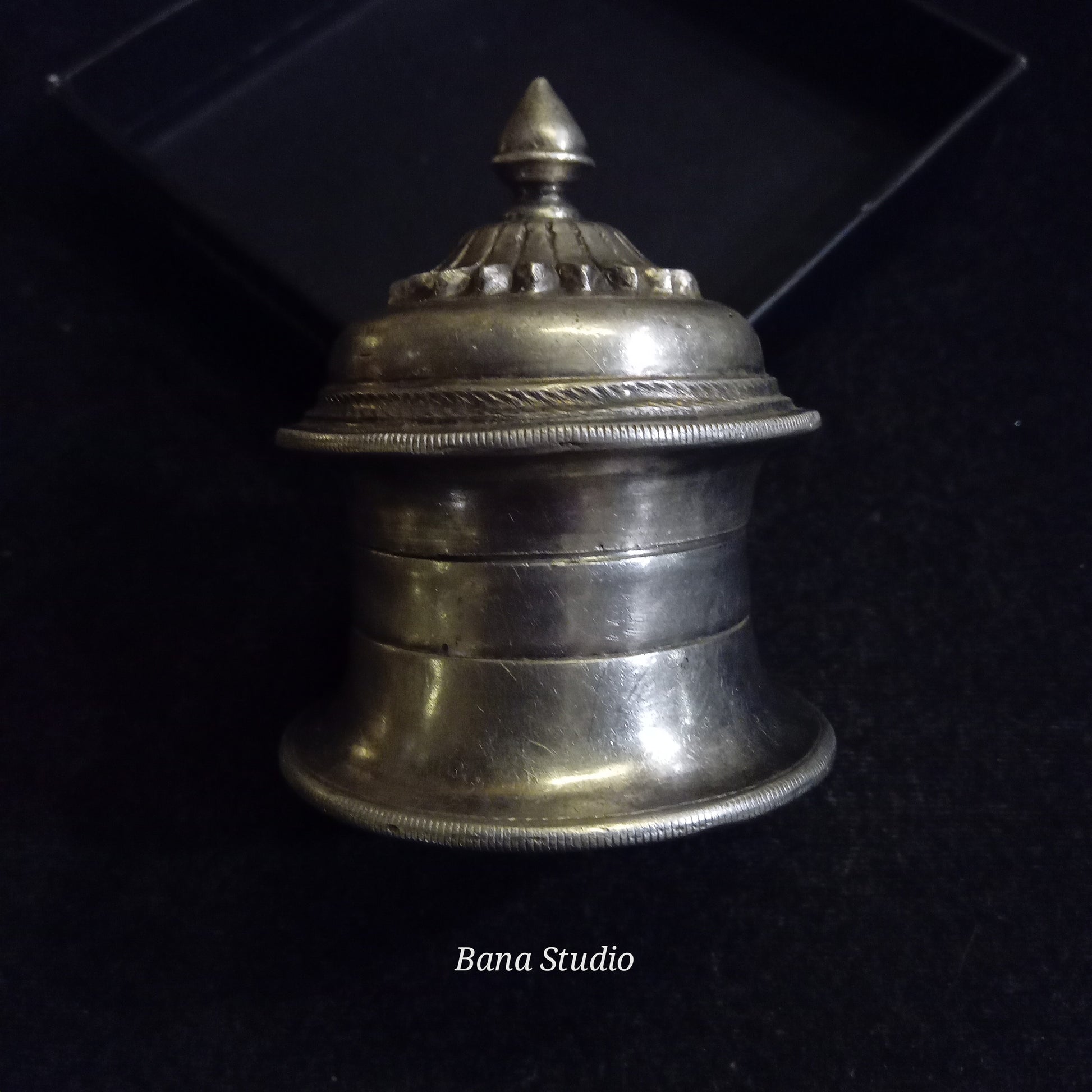 Vintage silver Sindoor Dani with two compartments from Uttar Pradesh.