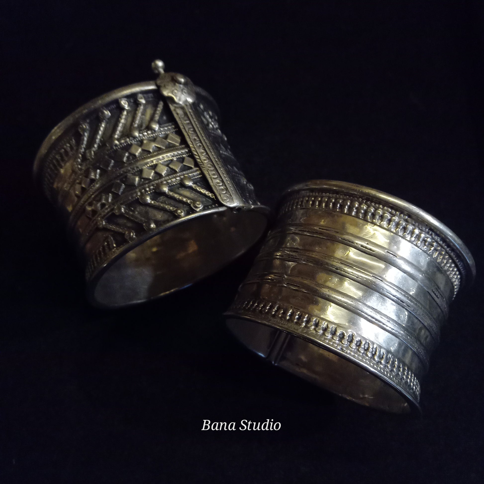 கையால் வடிவமைக்கப்பட்ட நேர்த்தியான வெள்ளி வளையல்கள்.